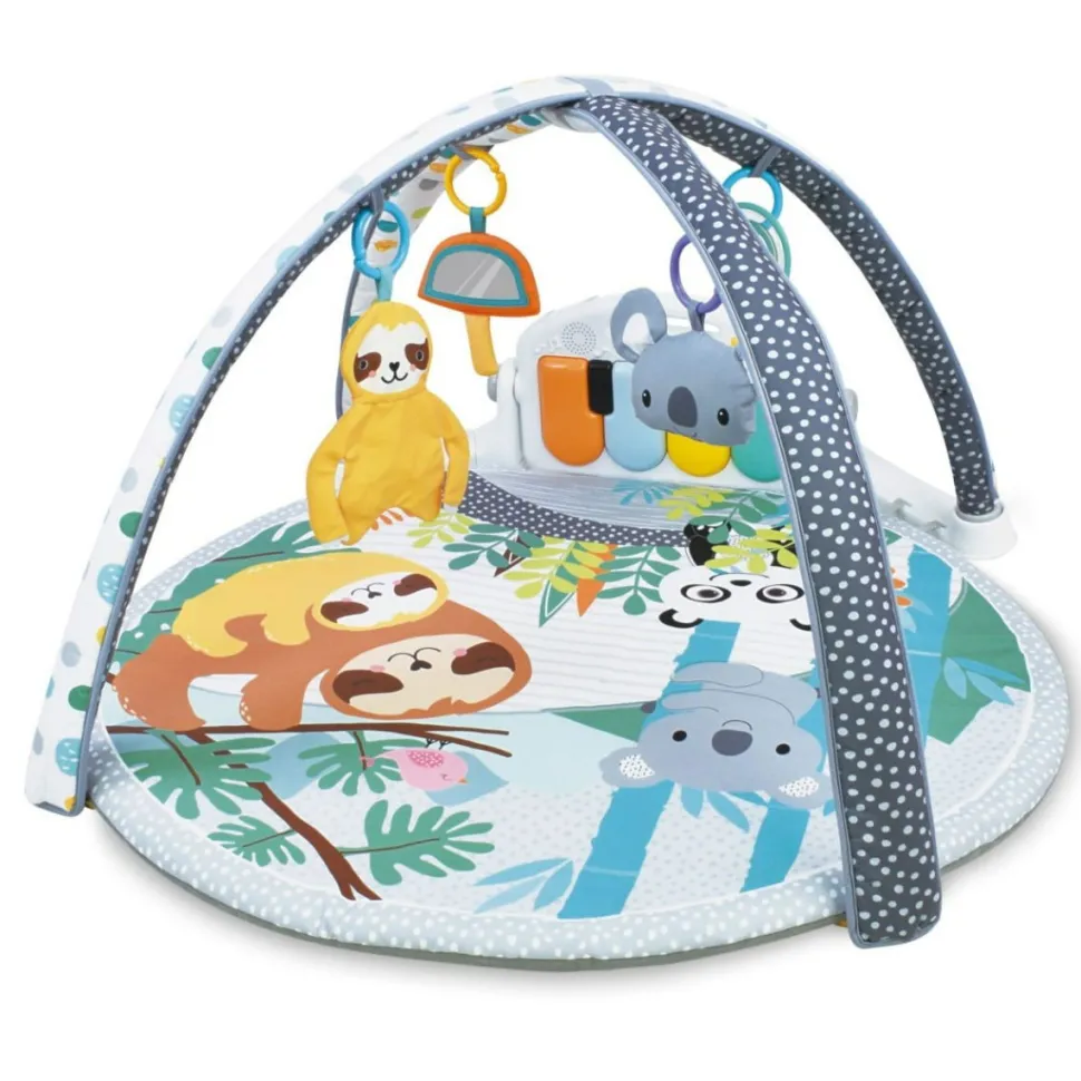 Das Baby Kann Hier Auf Dem Rucken Liegen Und Auf Das Spielzeug Schlagen Oder Treten, Das Uber Der Decke Hangt, Oder Auf Die Tasten Des Klaviers Treten, Damit Es Melodien Spielt Oder Lustige Gerausche Macht.