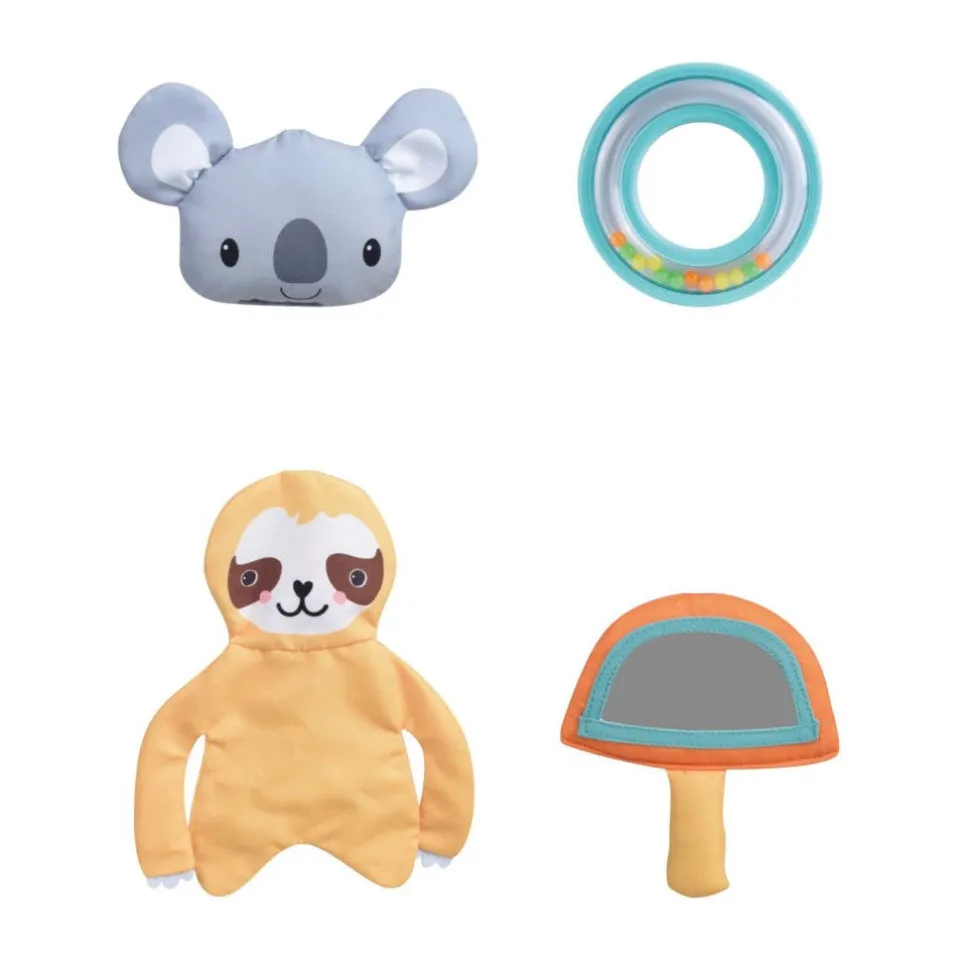 Es Gibt 4 Spielzeuge Zum Aufhangen Im Bugel, Aber Du Kannst Sie Auch Einfach Austauschen Und Andere Dinge Aufhangen, Mit Denen Dein Kind Gerne Spielt.