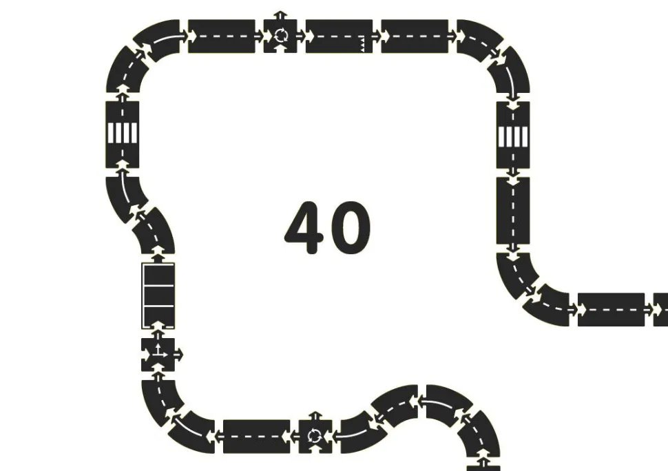 Riesiges Autobahnset Mit Ganzen 40 Teilen Von Solider Qualitat. Besteht Aus 4 Kreisverkehren, 16 Kurventeilen, 16 Geraden Stucken Und 4 Wegkreuzungen.
