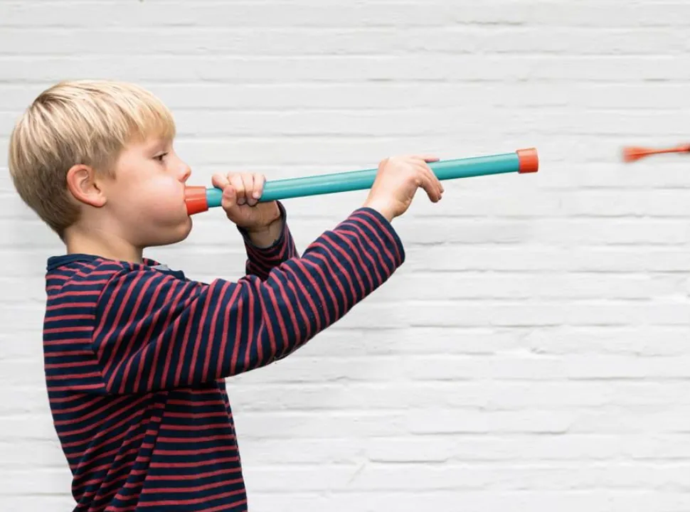 Das Blasrohr Hat Eine Spezielle Funktion, Die Verhindert, Dass Dein Kind Die Pfeile In Den Rachen Bekommt.
