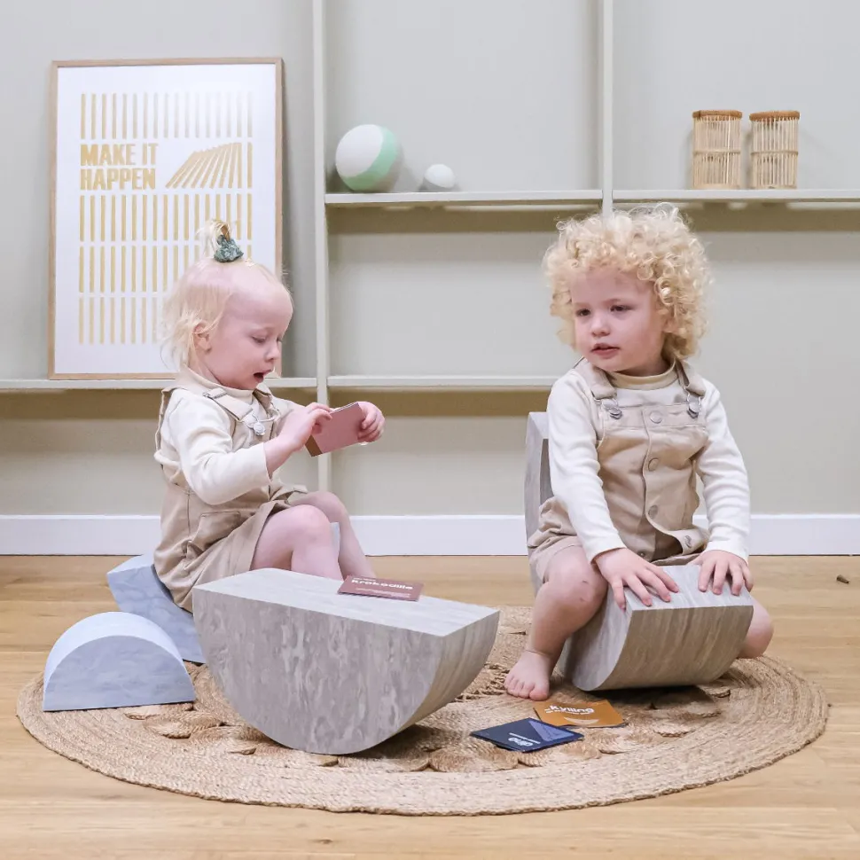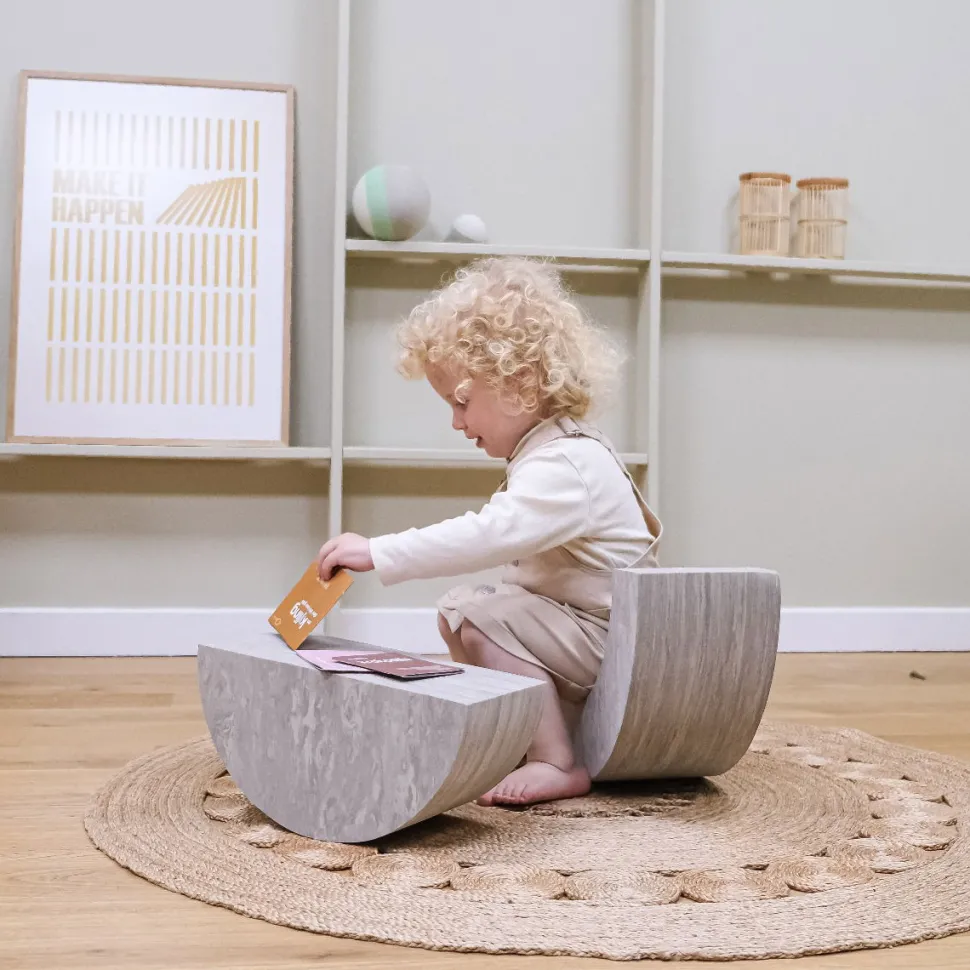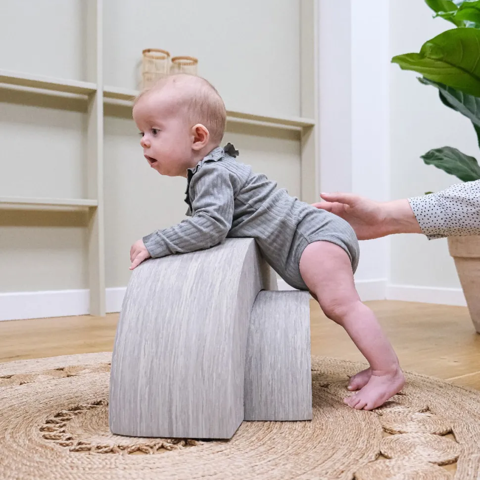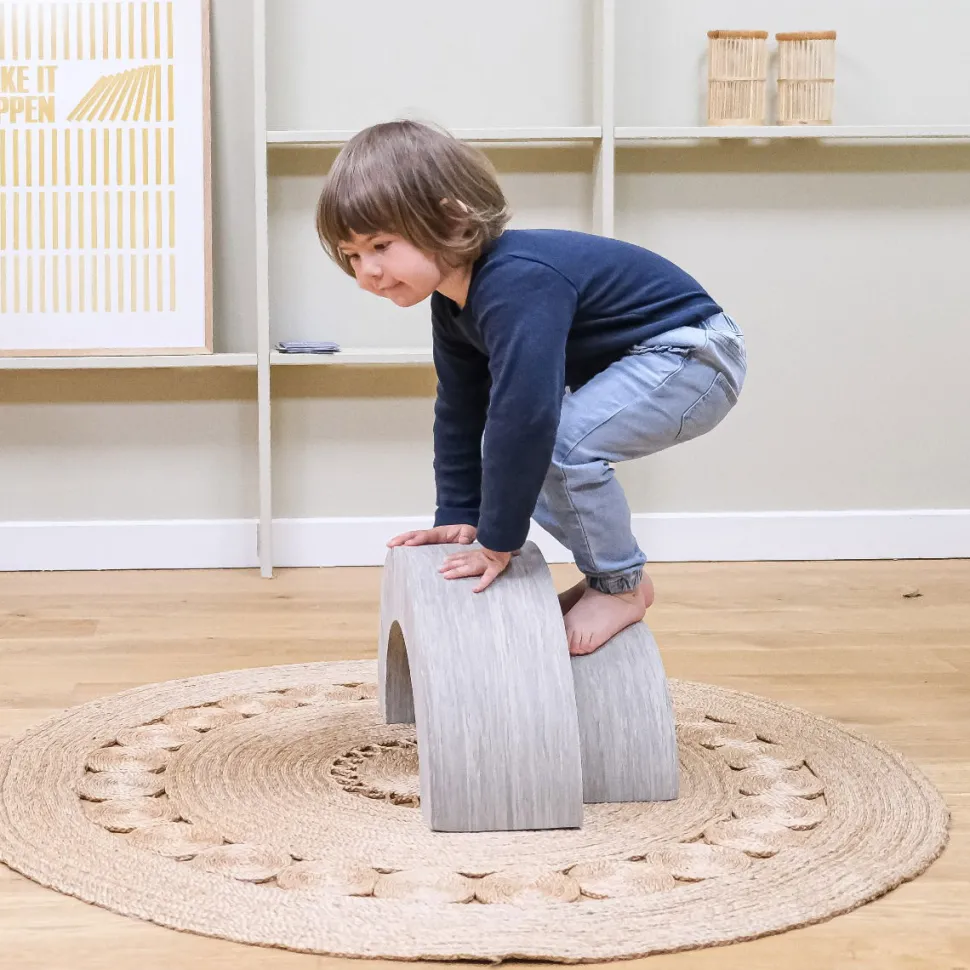 Verwende Die Teile Als Tisch Und Stuhl Oder Springe Vom Hohen Auf Das Niedrigere Element. Du Kannst Rauf Oder Runter Steigen. Klettern. Herunterhupfen. Oder Ihr Dreht Die Bogen Um, Um Zu Wippen Und So Den Gleichgewichtssinn Herauszufordern. Die Jungsten Konnen Sitzend Darauf Wippen Oder Den Gleichgewichtssinn Trainieren, Indem Ihr Das Spielmobel Als Wippe Verwendet, Stehend Oder Liegend.
