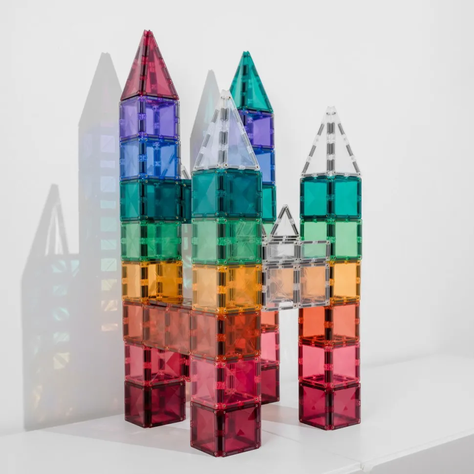 Die Feinen, Gedeckten Pastellfarben Der Wunderschon Transparenten Magnetischen Bauplattchen Machen Das Bauen Mit Diesem Connetix-Set Mit 40 Teilen In 2 Verschiedenen Geometrischen Formen Fast Zu Einer Meditativen Beschaftigung.