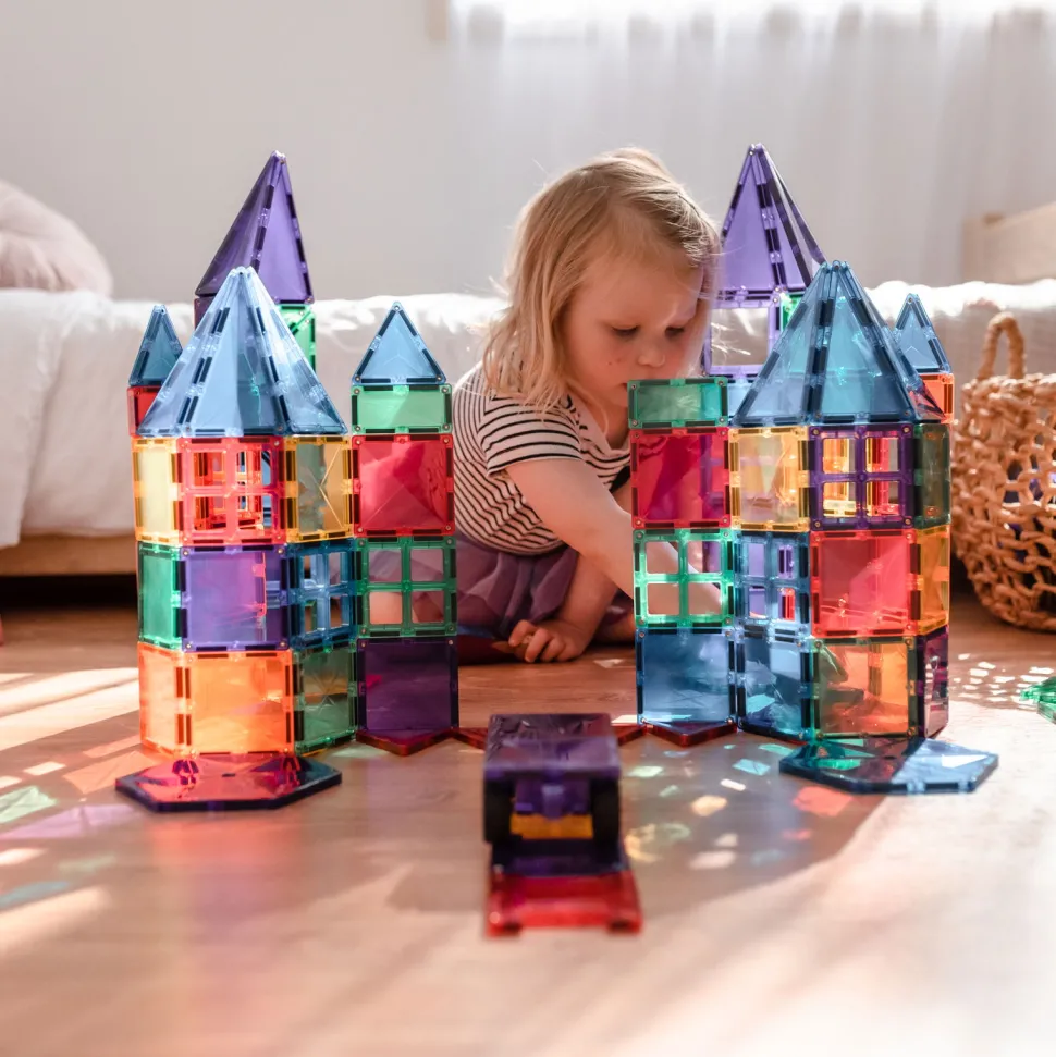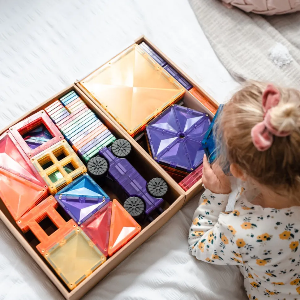 Im Jahre 2019 Wurde Connetix Von Zwei Australischen Eltern Mit Einer Idee Gegrundet, Magnetbausteine Noch Transparenter Zu Gestalten. Deren Kinder Liebten Die Magnetischen Bauteilen. In Dem Zusammenhang Entwarfen Sie Auch Kugelbahnen, Die Zu Den Magnetsets Mit Bauteilen Passen Und Und Voila, Schon War Das Original Connetix Geboren. Connetix Sind Bauplattchen Mit Magneten, Die Vom Design Her Etwas Transparenter Und Cleaner Als Zum Beispiel Magna-Tiles Sind. Sie Sind Noch Bunter Und Schoner, Wenn Dein Kind Vor Einem Fenster Oder Auf Einem Leuchttisch Baut. Sie Haben Zwei Magnte Auf Beiden Seiten Und Konnen Perfekt Mit Magna-Tiles Und Cleverclixx Kombiniert Werden, Jedoch Sind Diese Nicht Mit Magformers Passgenau.Connetix Ist Hergestellt Aus Widerstandsfahigen Abs-Kunstoff. Denke Dran, Dass Du Auch Ein Set Mit Viereckigen Bauplattchen Von Magna-Tiles Oder Connetix Brauchst, Damit Du Eine Grose Kugelbahn Aufbauen Kannst.