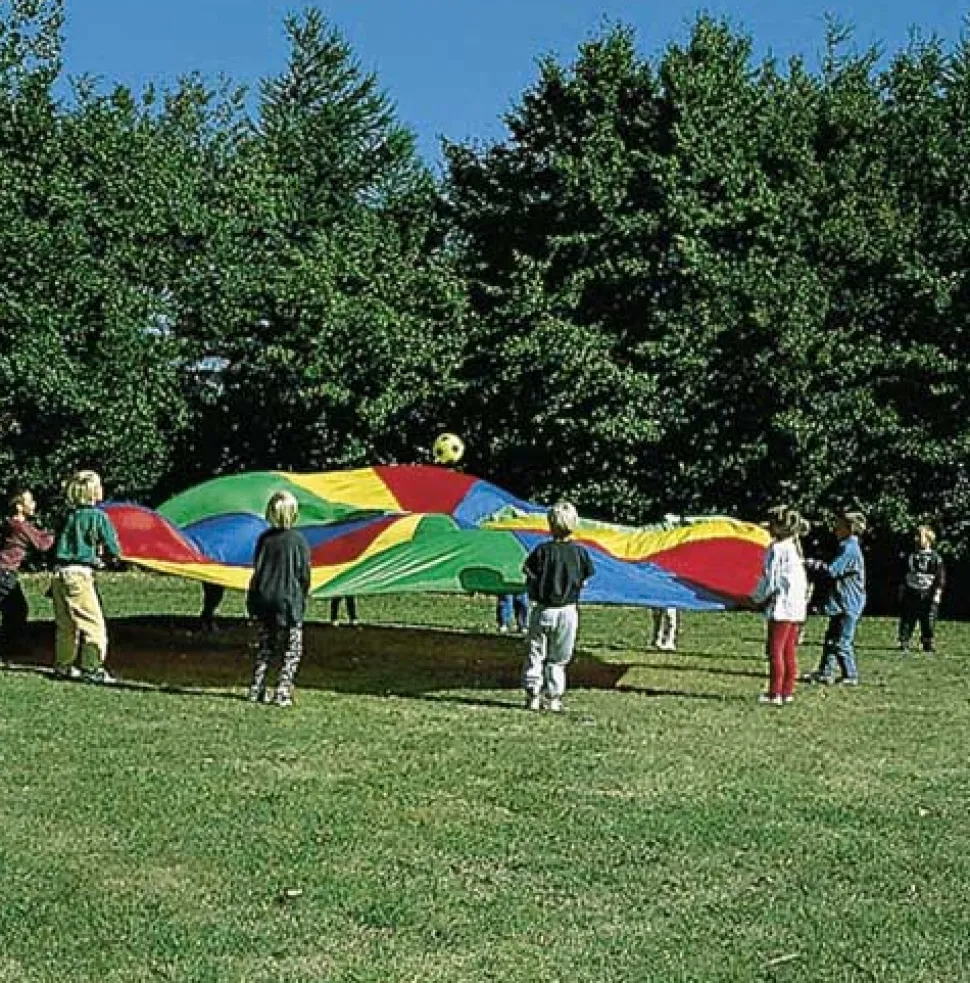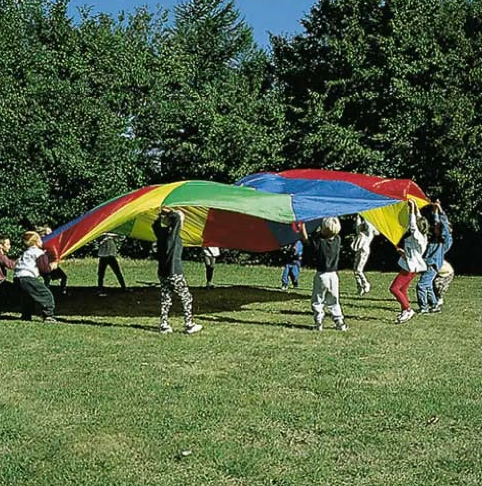 Damit Kann Man Auf Wunderbare Weise Eine Grundlegende Korperliche Koordinationsfahigkeit Entwickeln. Ein Fallschirm Inspiriert Kindergruppen Und Erwachsene Zu Unzahligen Schonen Aktivitaten. Dieses Modell Besteht Aus Buntem, Leichten Und Feuerwiderstandsfahigen Polyester Und Besitzt Starke Griffe.
