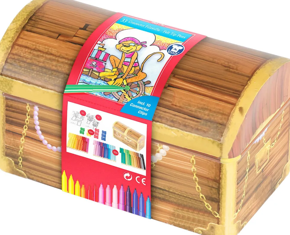 33 Filzstifte Auf Wasserbasis In Einer Praktischen Und Soliden Metallbox Im Schatzkistenlook, Die Es Deinem Kind Einfach Macht, Die Stifte Nach Dem Malen Wieder Aufzuraumen.