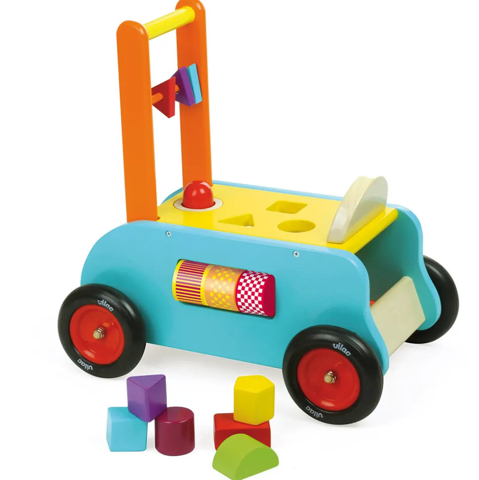 Wenn Die Kleinen Beine Mude Werden, Kann Dein Kind Sich Entweder Auf Den Gehwagen Setzen Und Sich Ausruhen, Sich Weiter Schieben Oder Auf Den Boden Setzen Und Versuchen, Die Richtigen Locher Für Die Kleinen Holzklötze Zu Finden.