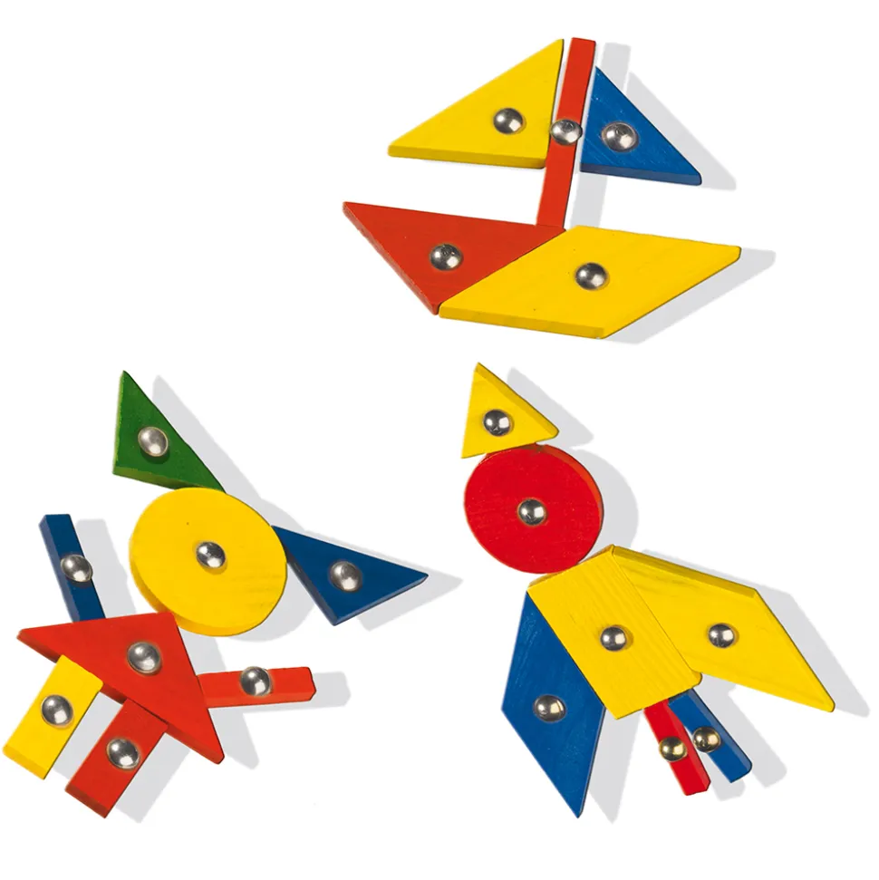 Das Set Kann Immer Wieder Verwendet Werden, Und Man Kann Aus Den Vielen Formen In Rot, Gelb, Grun Und Blau Alle Moglichen Figuren Hammern Und Bauen.