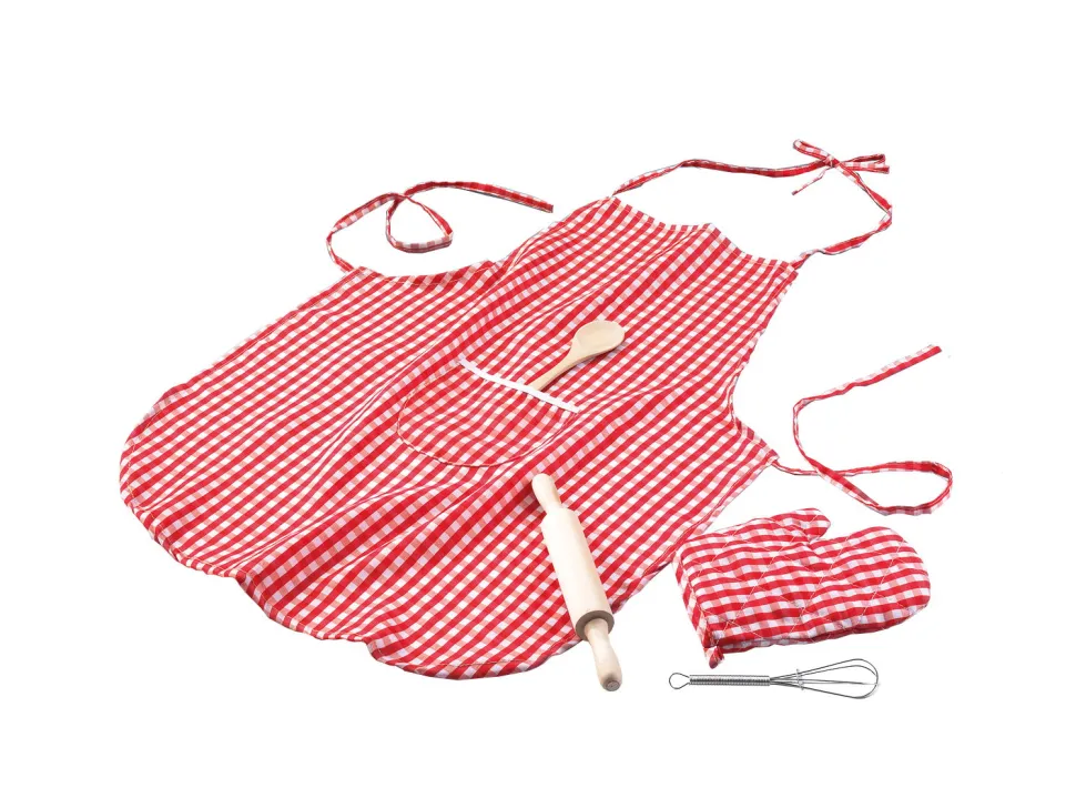 Kleide Deinen Kleinen Kuchenhelfer Mit Der Schurze In Kindergrose, Mit Topflappen, Kochloffel, Schneebesen Und Nudelholz Perfekt Ein.