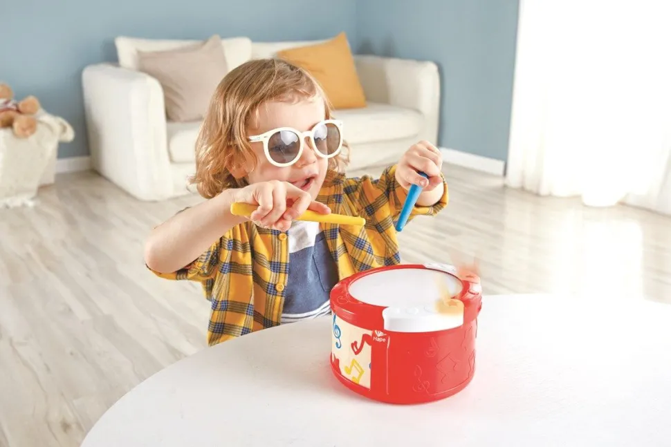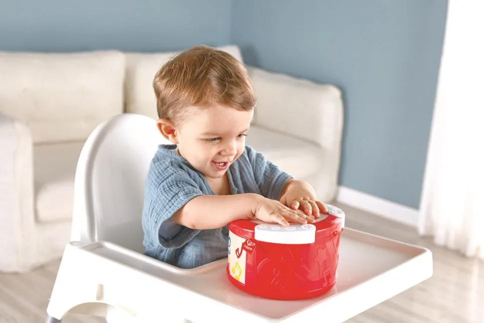 Liebe Trommel Von Hape, Die Deinem Kind Beibringen Kann, Einem Rhythmus Zu Folgen. Die Leuchtenden Sterne Zeigen Ihrem Kind, Wann Es Trommeln Soll. Der Schwierigkeitsgrad Kann Mit Der Entwicklung Ihres Kindes Steigen.