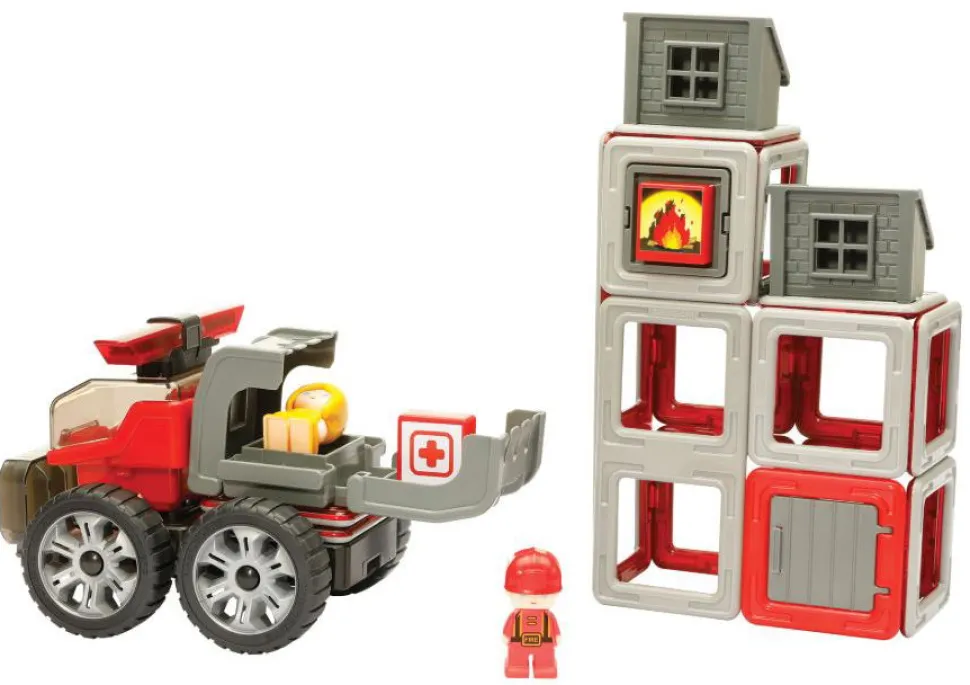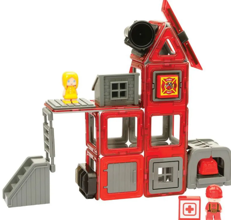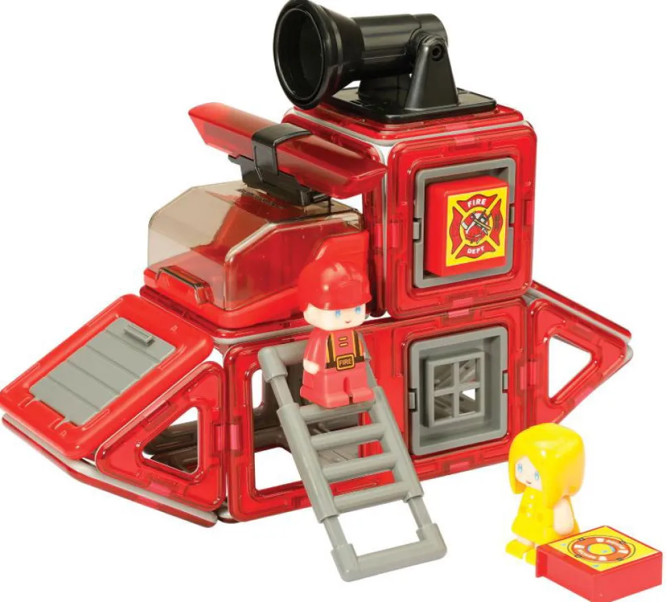 Das Ist Schon Ziemlich Genial. Tolles Set Mit Den Bekannten Magformers, Das Etwas Spielorientierter Ist Und In Form Einer Feuerwache Mit Feuerwehrleuten Und Fahrzeugen Kommt.