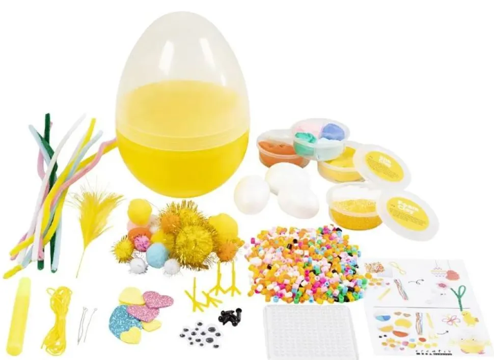 Bastelt Osterliche Bugelperlen-Kunstwerke, Gestaltet Niedliche Kuken Mit Wackelaugen Oder Details Aus Silk Clay Und Foam Clay® Oder Formt Blumen Aus Den Bunten Pfeifenputzer.