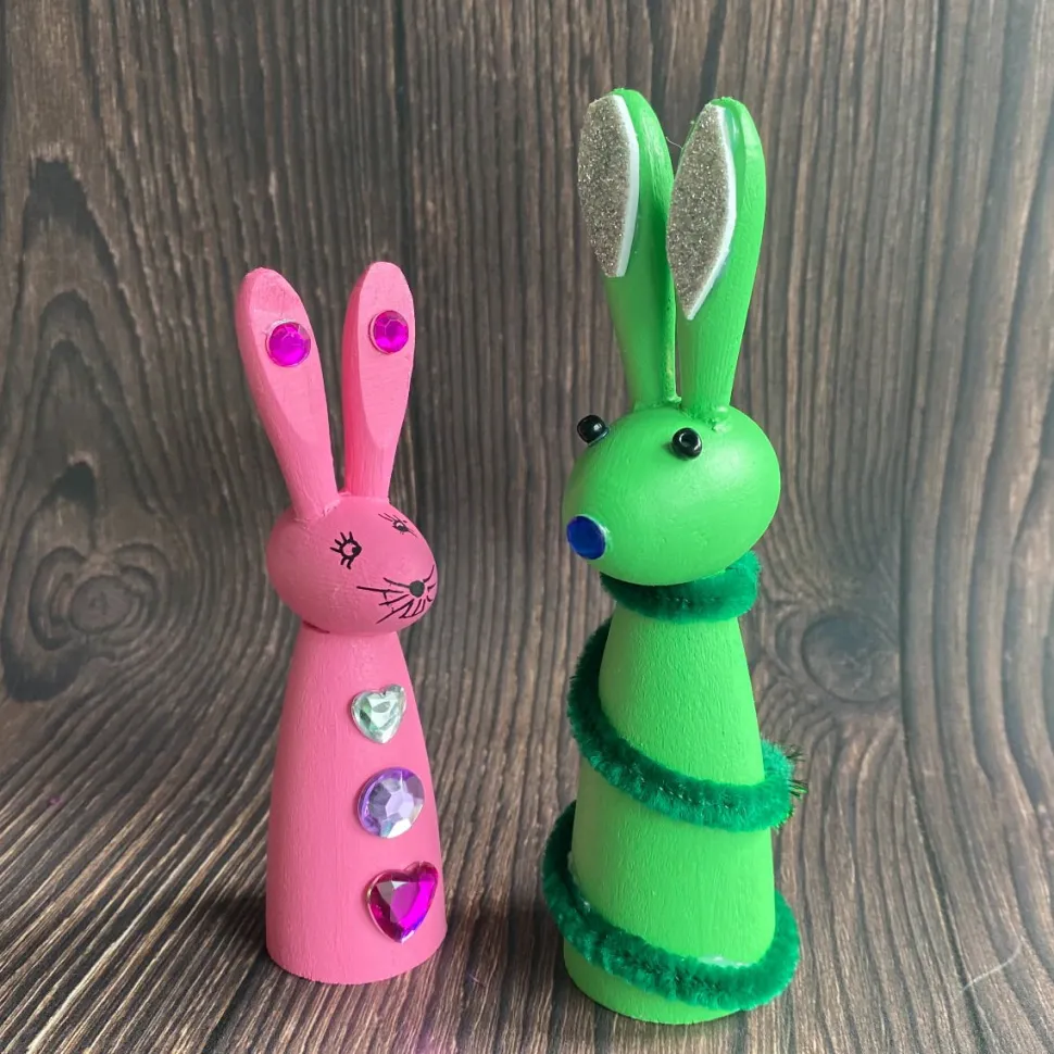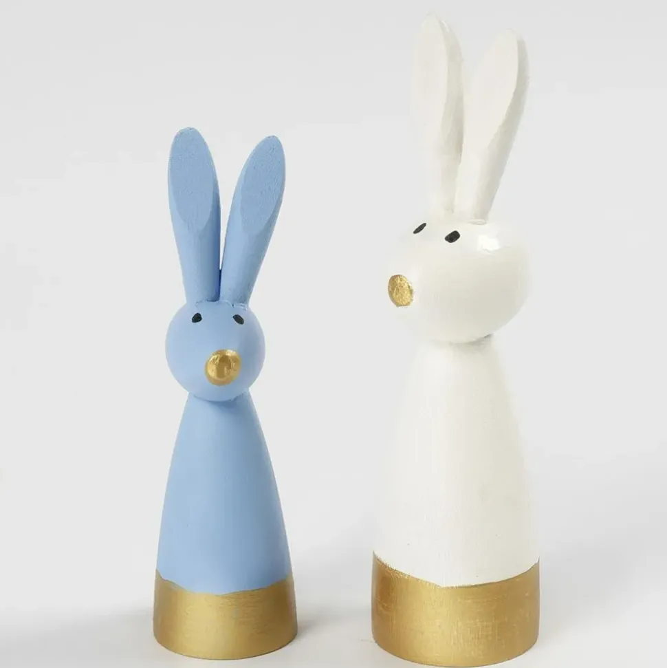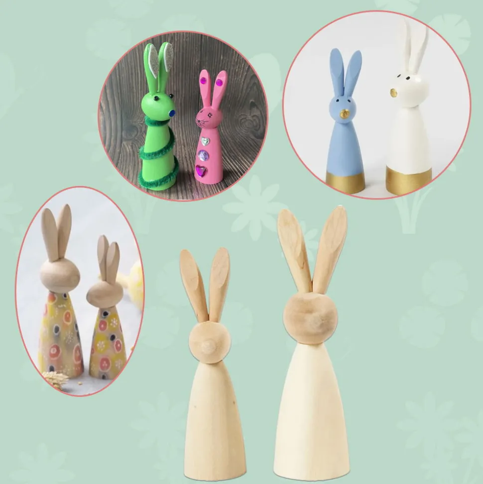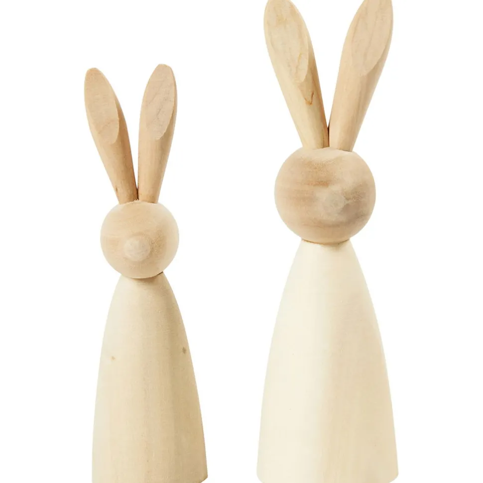 Zwei Feine Osterhasen Aus Hellem Holz, Die Dein Kind Bemalen Kann.Denke Daran, Den Tisch Erst Abzudecken, Um Den Schmutz Zu Reduzieren.