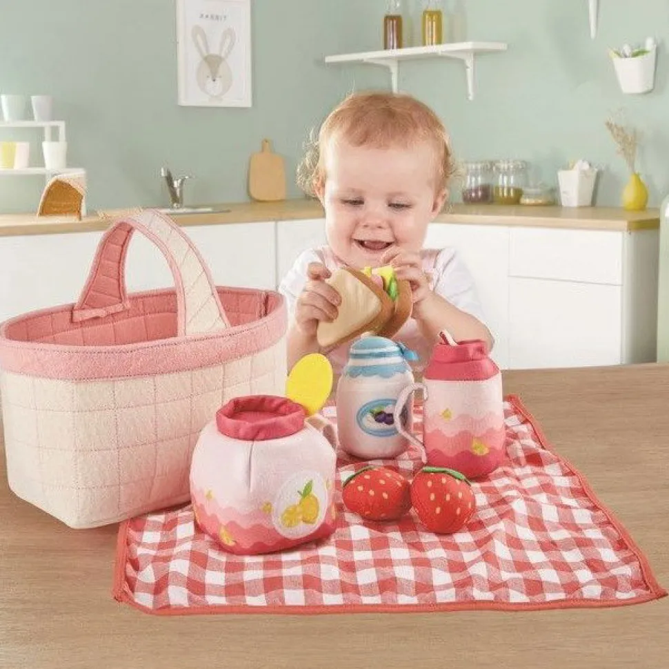Mach Ein Picknick Am Strand, Im Wald Oder Im Garten Mit Diesem Feinen Set Mit Picknickkorb, Decke, 3 Flaschen Mit Aufdruck, Erdbeeren Und Einzelteilen Für Ein Leckeres Sandwich.