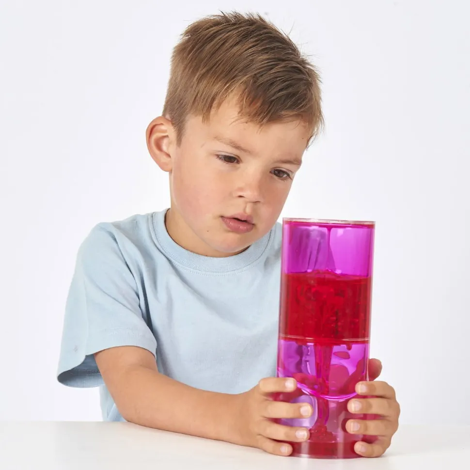 Faszinierende Sensorische Rohre Für Spannende Beobachtungen. Beobachte, Wie Die Rote Geleeartige Flussigkeit Im Rohr Von Oben Nach Unten Fliest. Ein Bisschen Wie Eine Sanduhr.