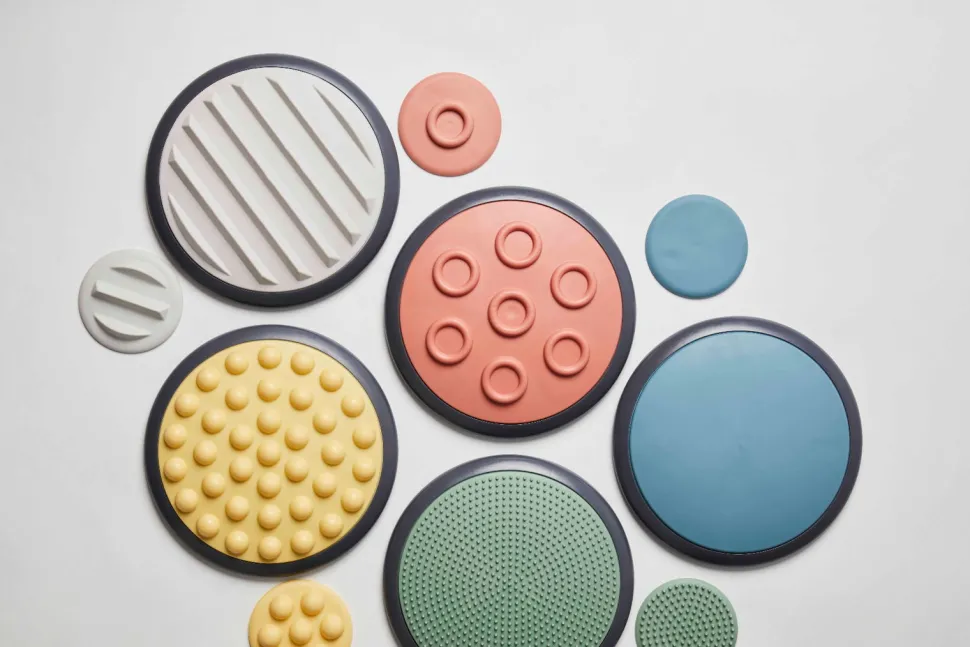Diese Taktilen Scheiben Laden Kinder Ein, Ihren Tastsinn Zu Nutzen Und Zu Entwickeln.Das Set Besteht Aus 5 Grosen Und 5 Kleinen, Sensorischen Scheiben, Jede Scheibe Mit Eigenem Muster Und Farbe.Neues Design In Schonen, Nordischen Farben.