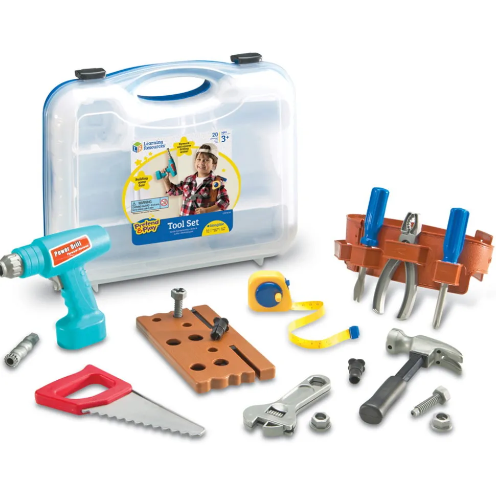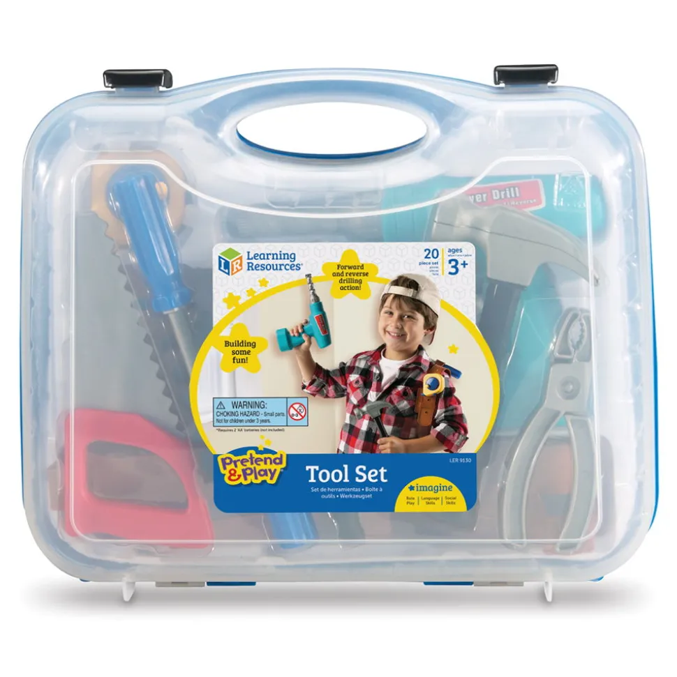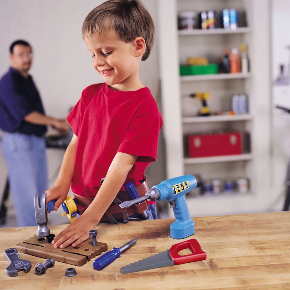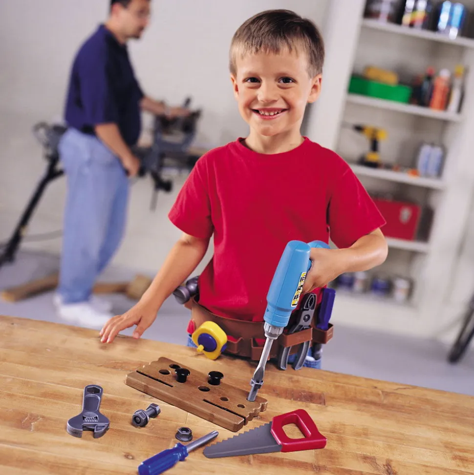Das Set Enthalt: Sage, Masband, Hammer, Schraubendreher, Schraubenschlussel, Zange, Muttern Und Bolzen, Holzbrett Für Schrauben, Werkzeuggurtel, Akkubohrmaschine Und Einen Smarten Aufbewahrungskoffer Mit Den Masen 30,5 Cm X 35,5 Cm. Der Bohrer Verwendet 2 Aa-Batterien (Nicht Im Lieferumfang Enthalten).