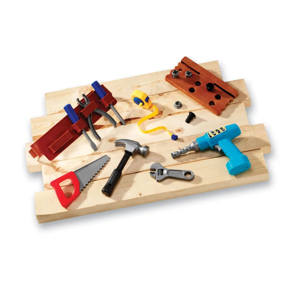 Hier Ist Alles Dabei, Was Er/Sie Beim Bohren, Sagen, Hammern, Schrauben Und Messen Braucht. Es Macht Immer Spas, Werkzeuge Zu Verwenden, Die Denen Von Papa Oder Mama Sehr Ahnlich Sind. Die Grose Des Werkzeugs Passt Perfekt In Die Kleine Hand. Die Kinder Konnen Stunden Damit Verbringen, Bolzen In Die Holzplanke Zu Stecken Und Sie Auf- Und Abzuschrauben.