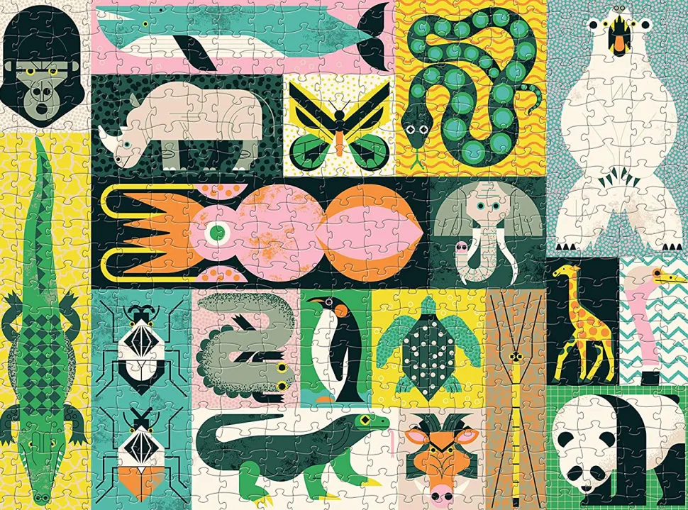 Tolles 500-Teile-Puzzle Mit Coolen Dinosauriern Und Anderen Tieren Der Urzeit. Bist Du Es Auch Mude, Riesige Puzzles Zu Legen, Die Hauptsachlich Aus Blauem Himmel Bestehen? Dann Ist Dieses Puzzle, Dessen Motive Je Einen Verschiedenfarbigen Hintergrund Haben, Ein Wahrer Hit – Und Die Farben Helfen, Die Teile Richtig Zu Legen.