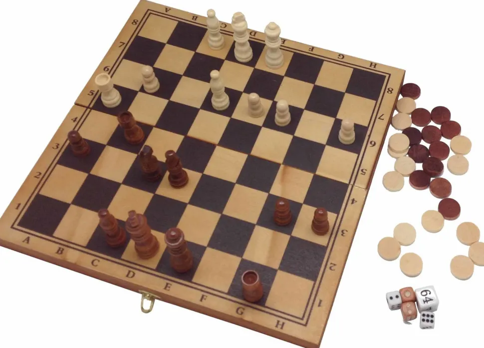 Dame, Schach Und Backgammon, Wobei Schach Und Dame Auf Der Einen Seite Und Backgammon Auf Der Anderen Seite Gespielt Werden.