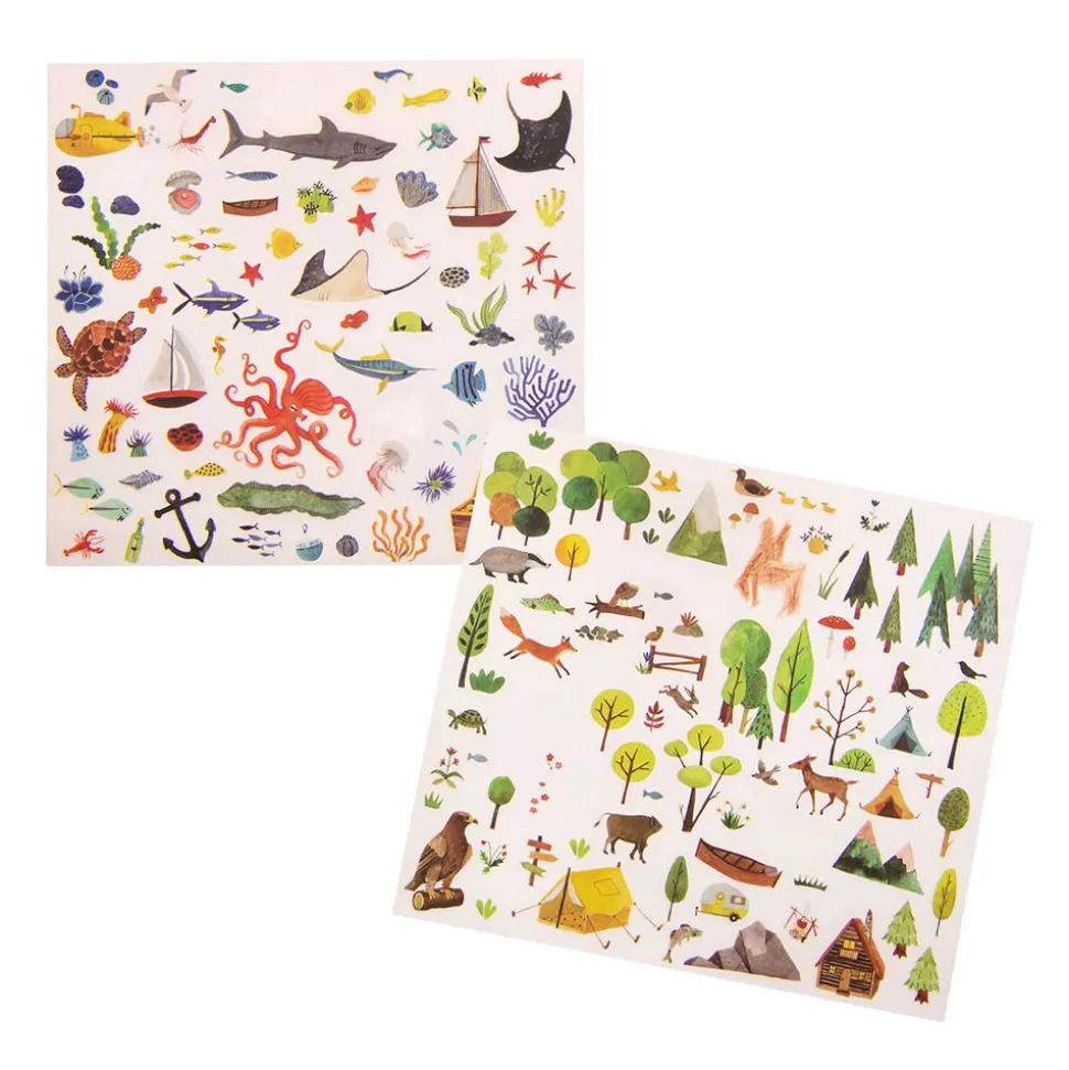 Die Bogen Mit Den Hintergrundbildern Sind 20 X 20 Cm Gros. Eines Zeigt Eine Wildnis Und Das Andere Ein Meer.