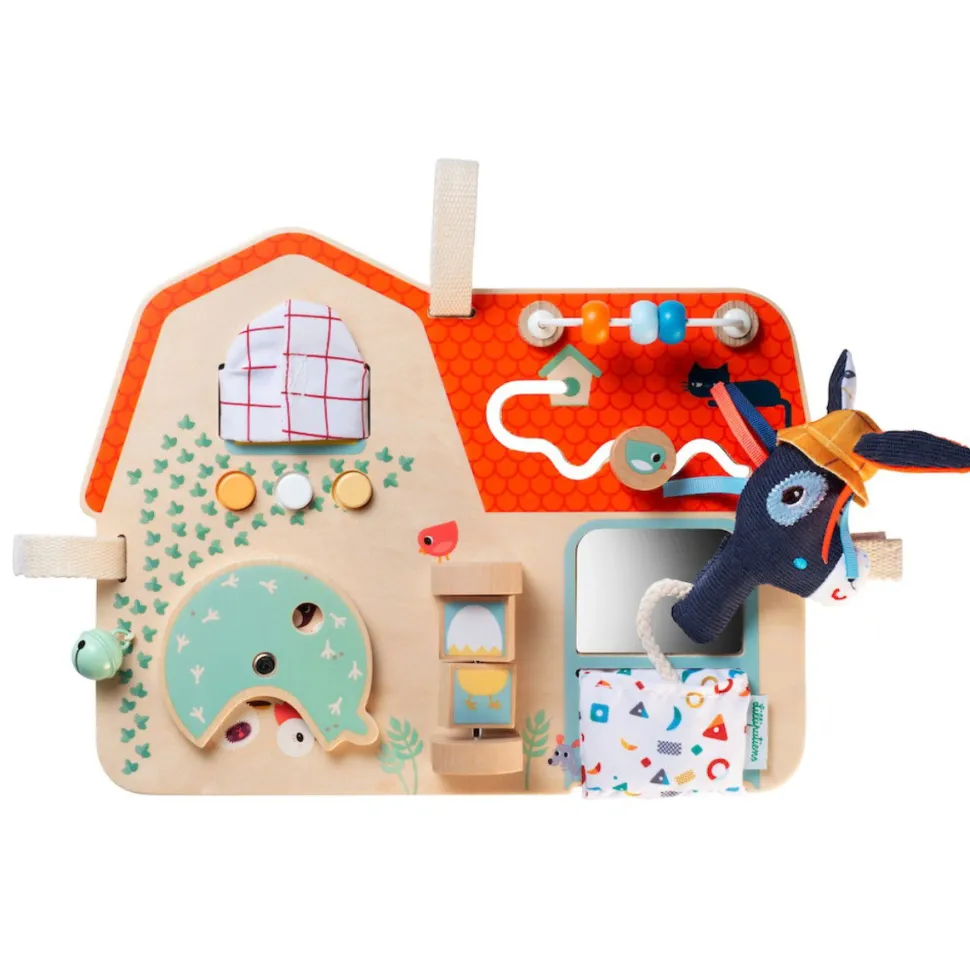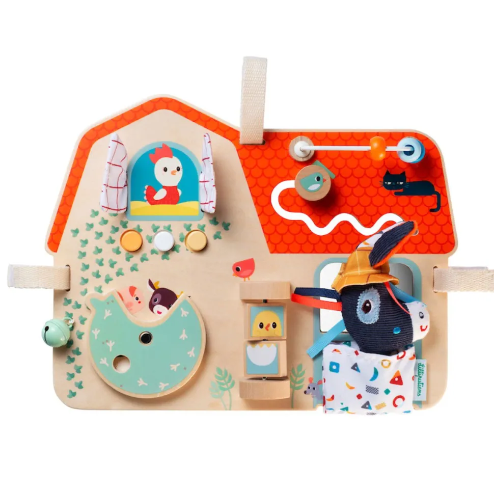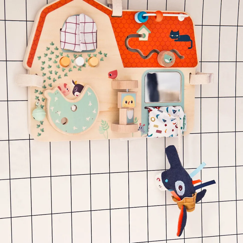 Hier Kann Dein Kind Seine Feinmotorik Und Neugierde Stimulieren, Indem Es Offnet Und Schliest, Den Vogel Begrust, Sich Selbst Im Spiegel Betrachtet Und Mit Der Kuh Spielt.