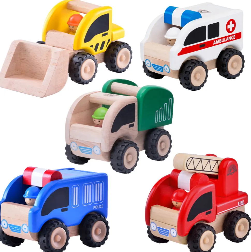 Robuste Und Charmante Autos Aus Holz, Die Gummireifen Haben Und Daher Keinen Larm Machen.