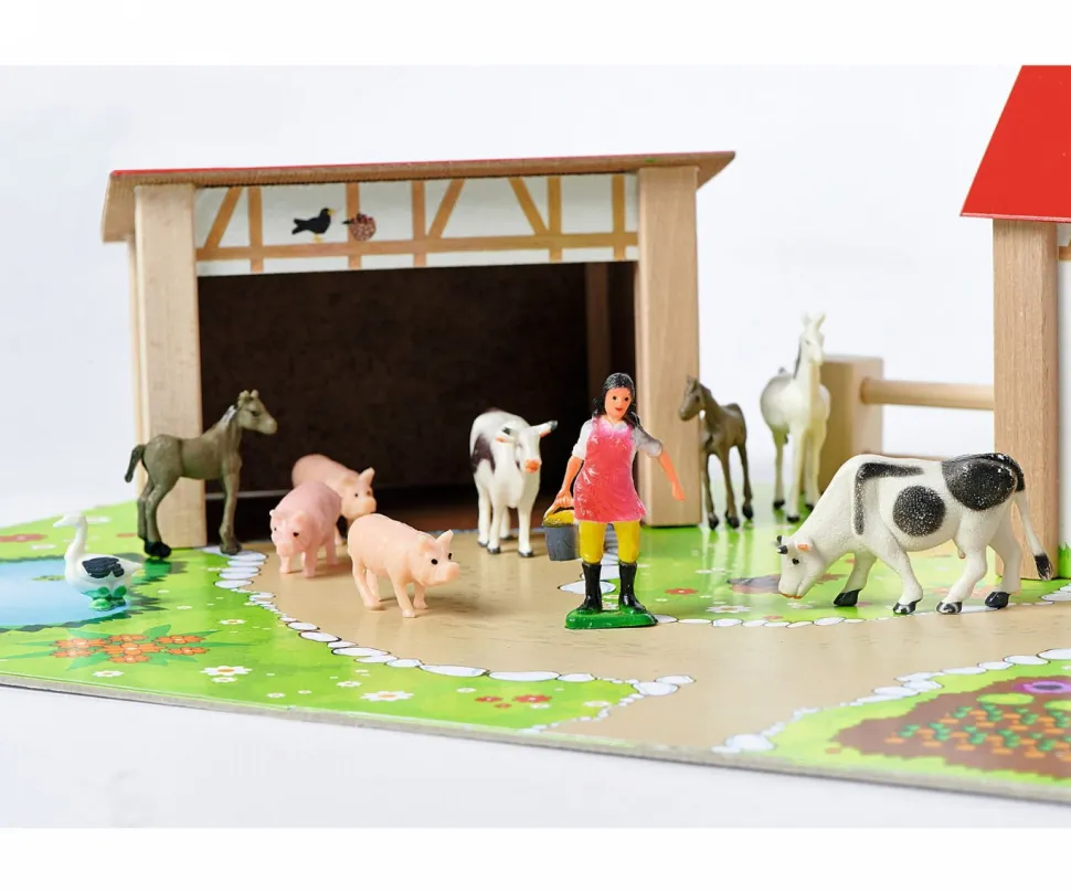 Das Rollenspiel Mit Dem Alltag Auf Dem Bauernhof Fordert Die Vorstellungskraft Und Soziale Kompetenz Deines Kindes.Die Schweine Sind Zum Baden Gegangen.Wie Reagieren Die Ganse Darauf?Und Kommt Der Bauer Angerannt, Wenn Die Kuhe Aus Dem Gehege Rennen Und Vom Gemuse Im Gemusegarten Fressen?