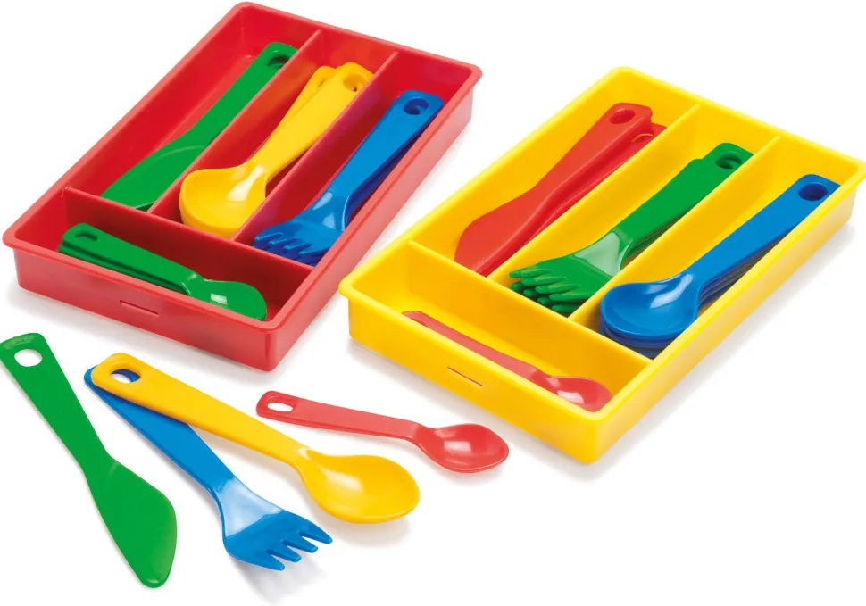 Es Ist Serviert – Dieses Besteck-Set Aus Umweltfreundlichem Und Lebensmittelechtem Kunststoff Ermoglicht Rollenspiele Und Dein Kindkann Auch Ruhig Damit Essen.