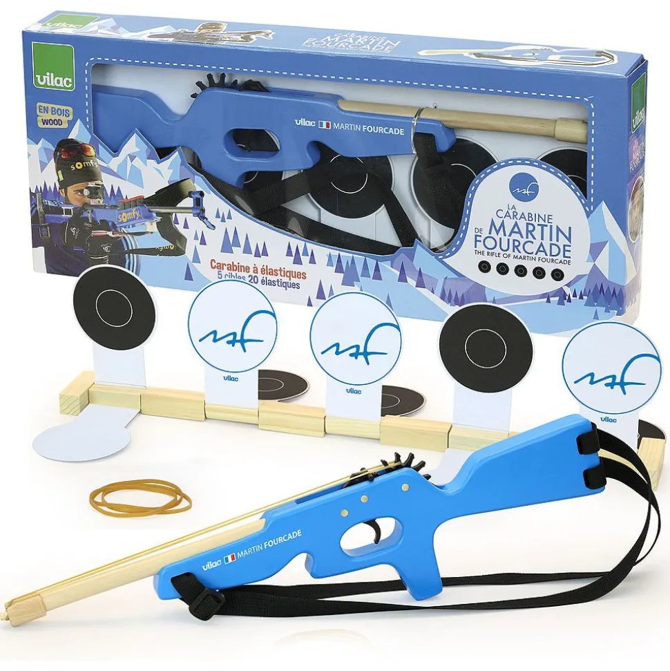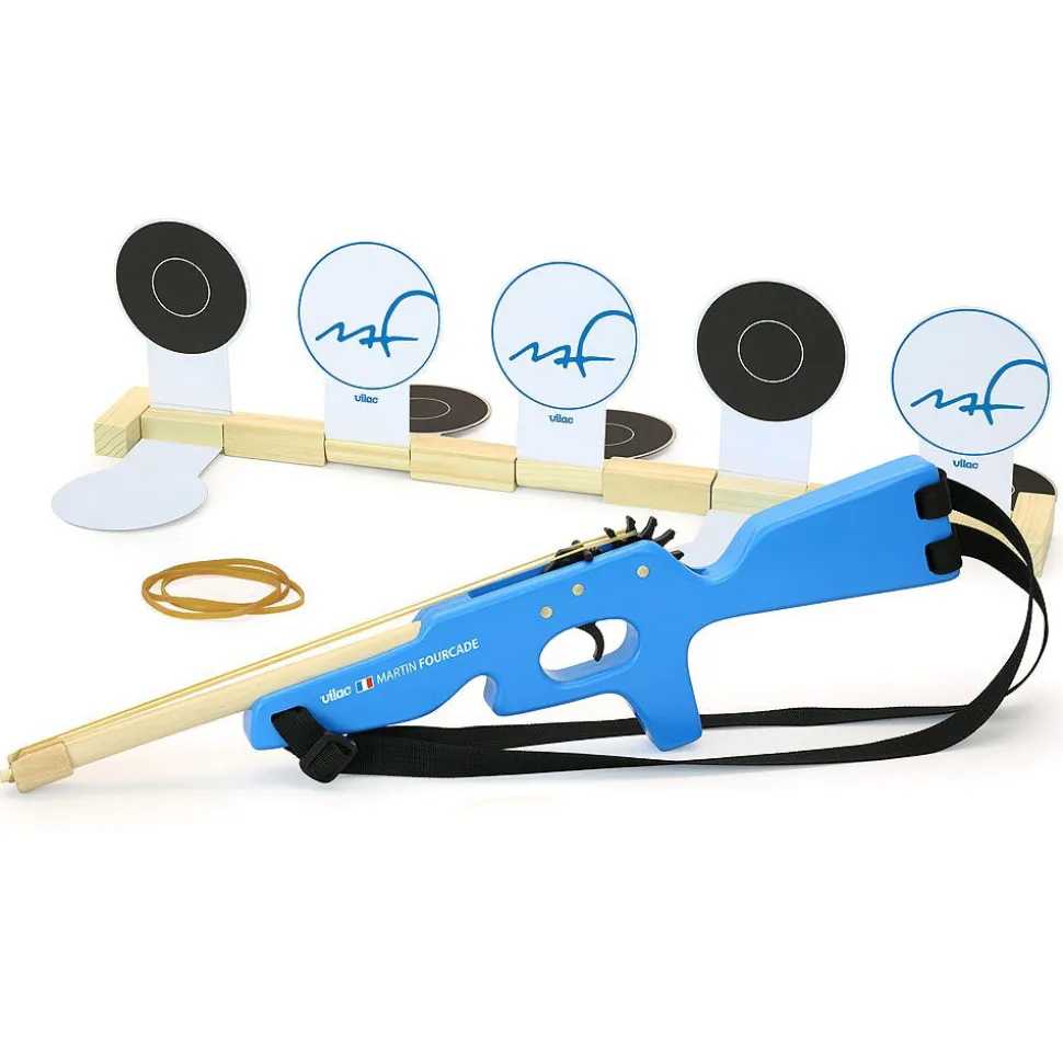 Dies Ist Eine Ziemlich Gute Idee. Ein Biathlongewehr, Das Mit Gespannten Gummibandern Schiest Und Die Zielscheiben Umwerfen Kann.