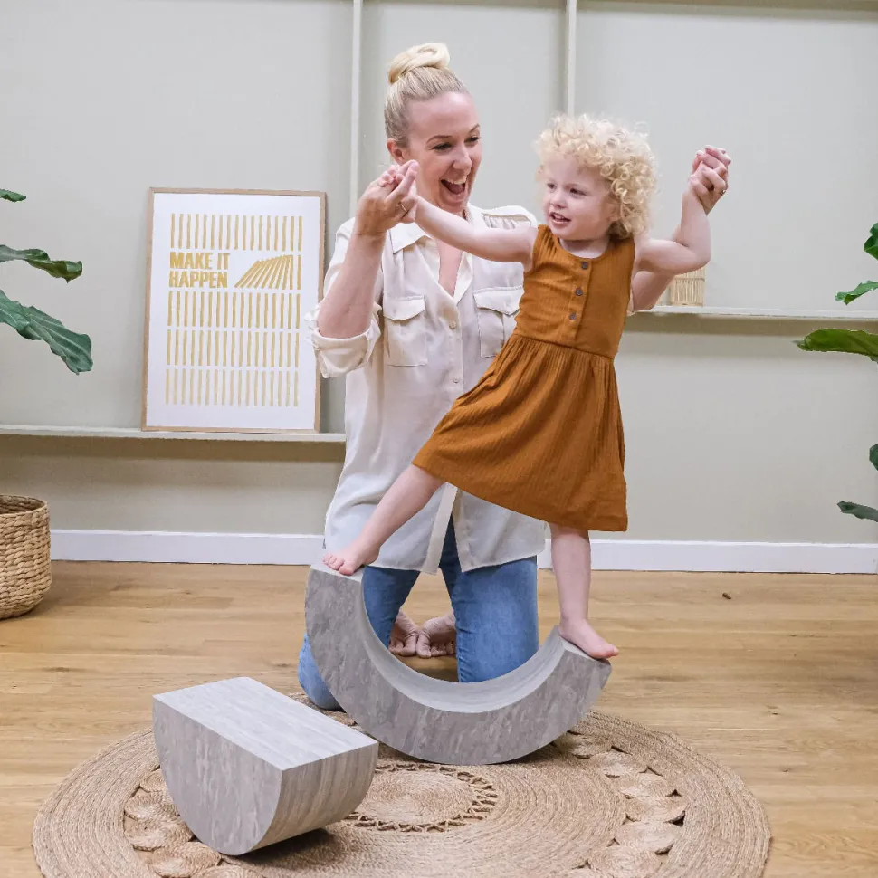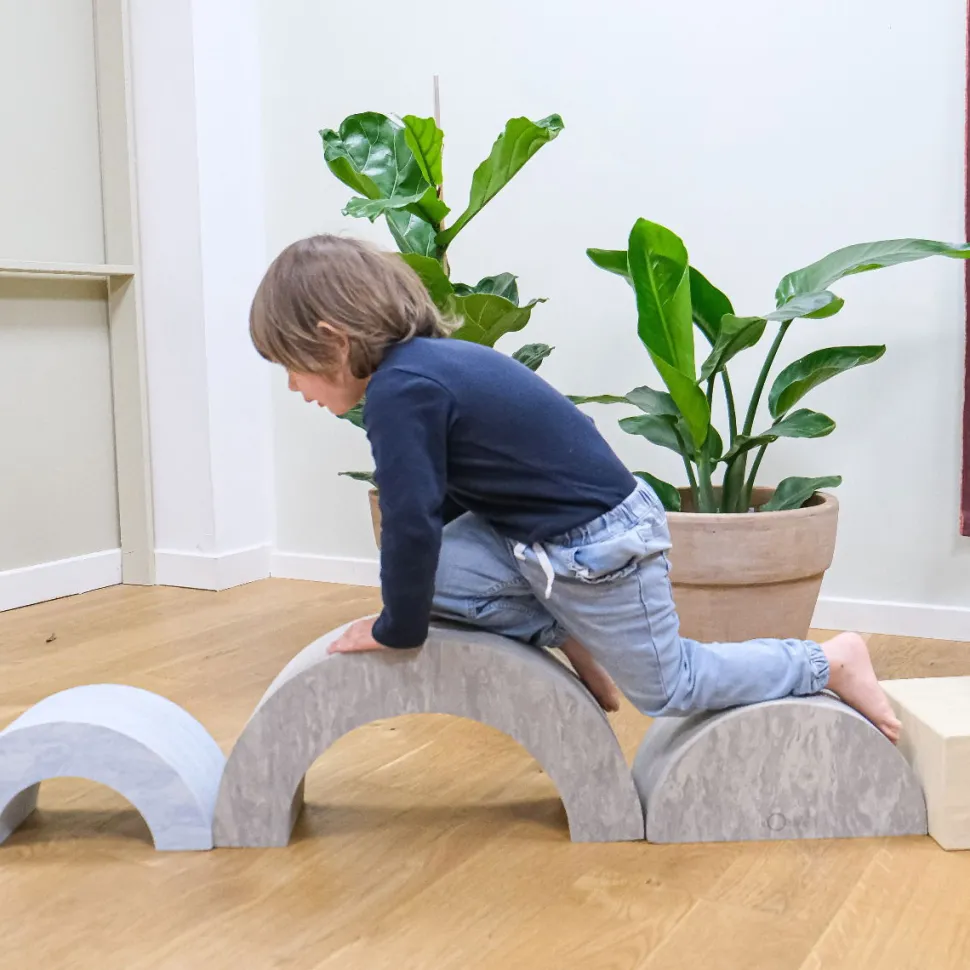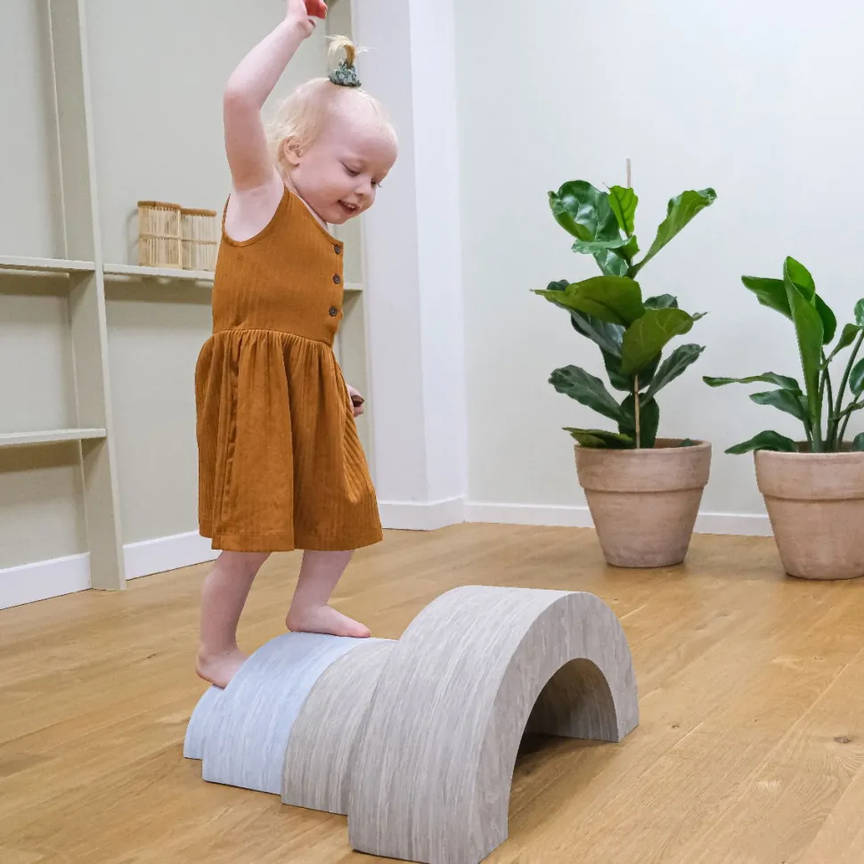 Verwende Die Teile Als Tisch Und Stuhl Oder Springe Vom Hohen Auf Das Niedrigere Element. Du Kannst Rauf Oder Runter Steigen. Klettern. Herunterhupfen. Oder Ihr Dreht Die Bogen Um, Um Zu Wippen Und So Den Gleichgewichtssinn Herauszufordern. Die Jungsten Konnen Sitzend Darauf Wippen Oder Den Gleichgewichtssinn Trainieren, Indem Ihr Das Spielmobel Als Wippe Verwendet, Stehend Oder Liegend.