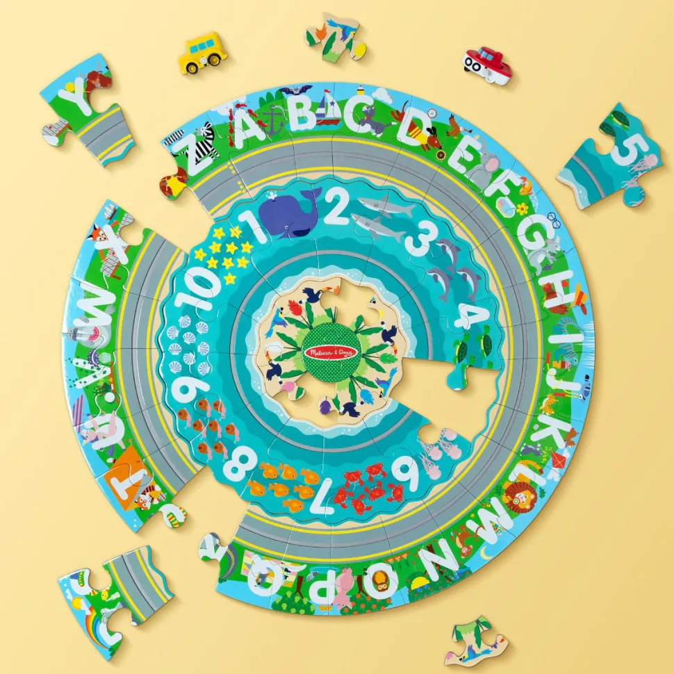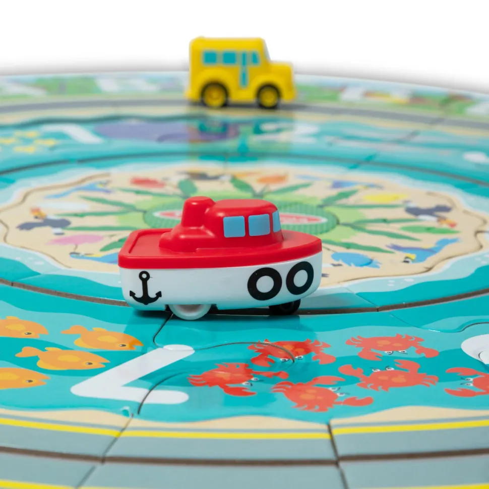 Unterhaltsame Kombination Aus Autospiel Und Puzzle, Mit Den Zahlen Von 1–10 Und Dem Alphabet.