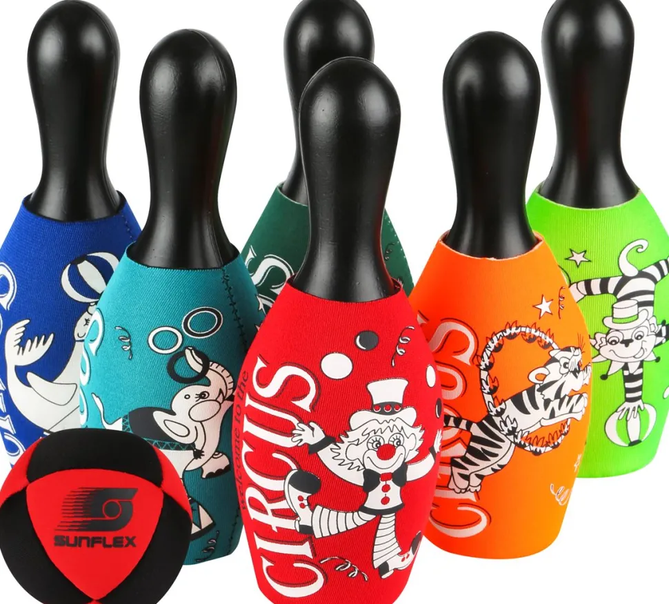 Mit Dem Set Bestehend Aus 6 Kegeln Aus Kunststoff Und Neopren Und Einer Bowlingkugel Aus Schaumstoff Kann Drinnen Und Drausen Gleichermasen Gespielt Werden.