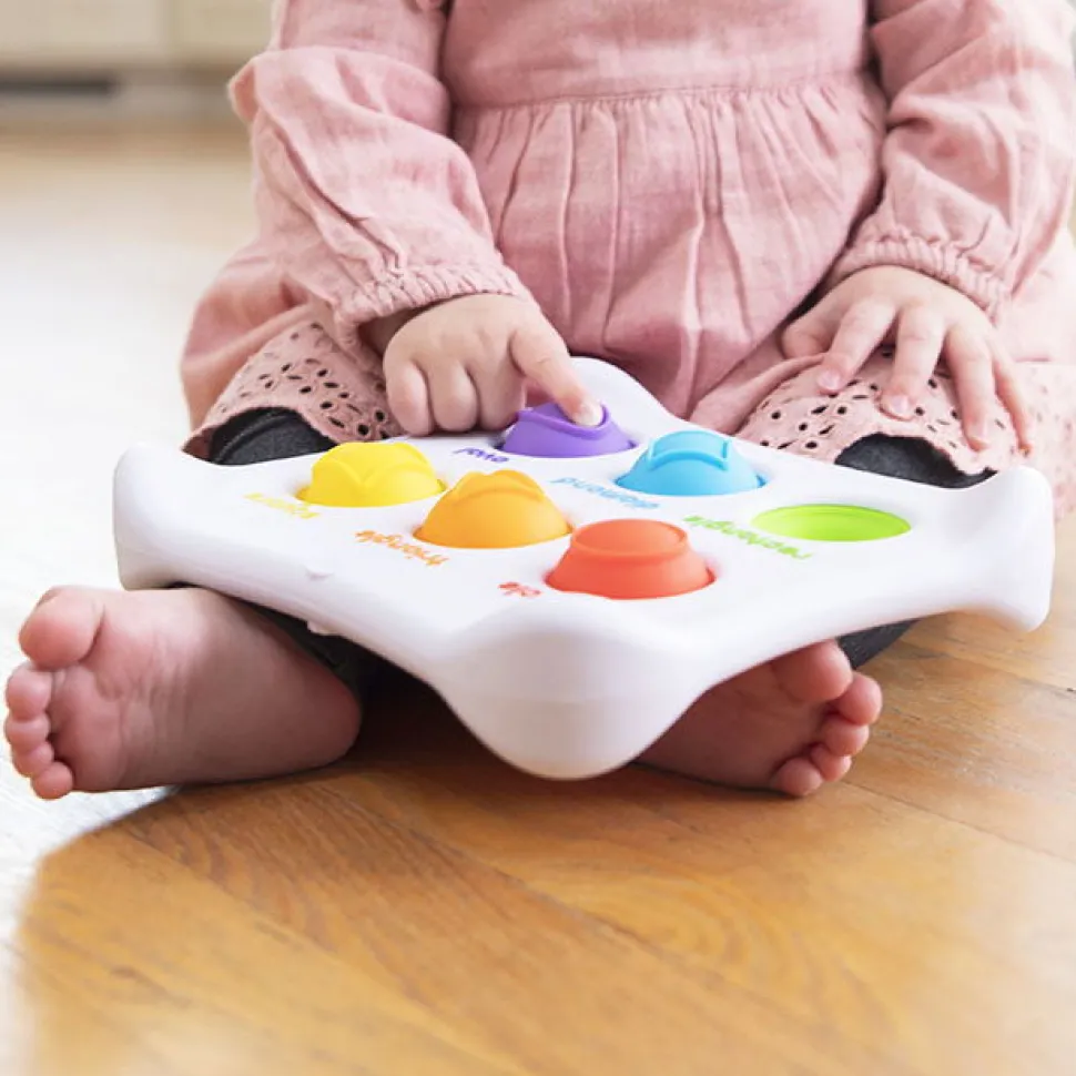 Dimpl Blasenpanel Mit 6 Bunten Silikonknopfen Zum Beruhren Und Drucken. Auf Jedem Knopf Befindet Sich Eine Geometrische Form. Einfach Drucken, Umdrehen Und Wiederholen.