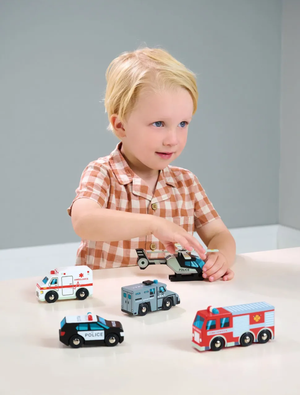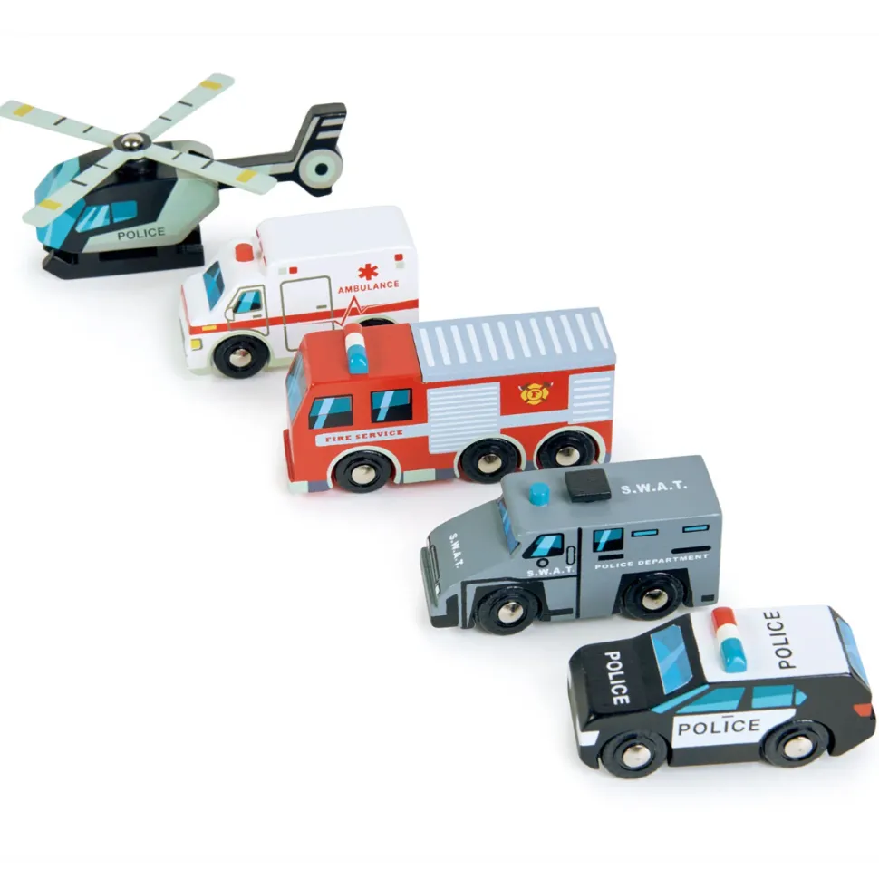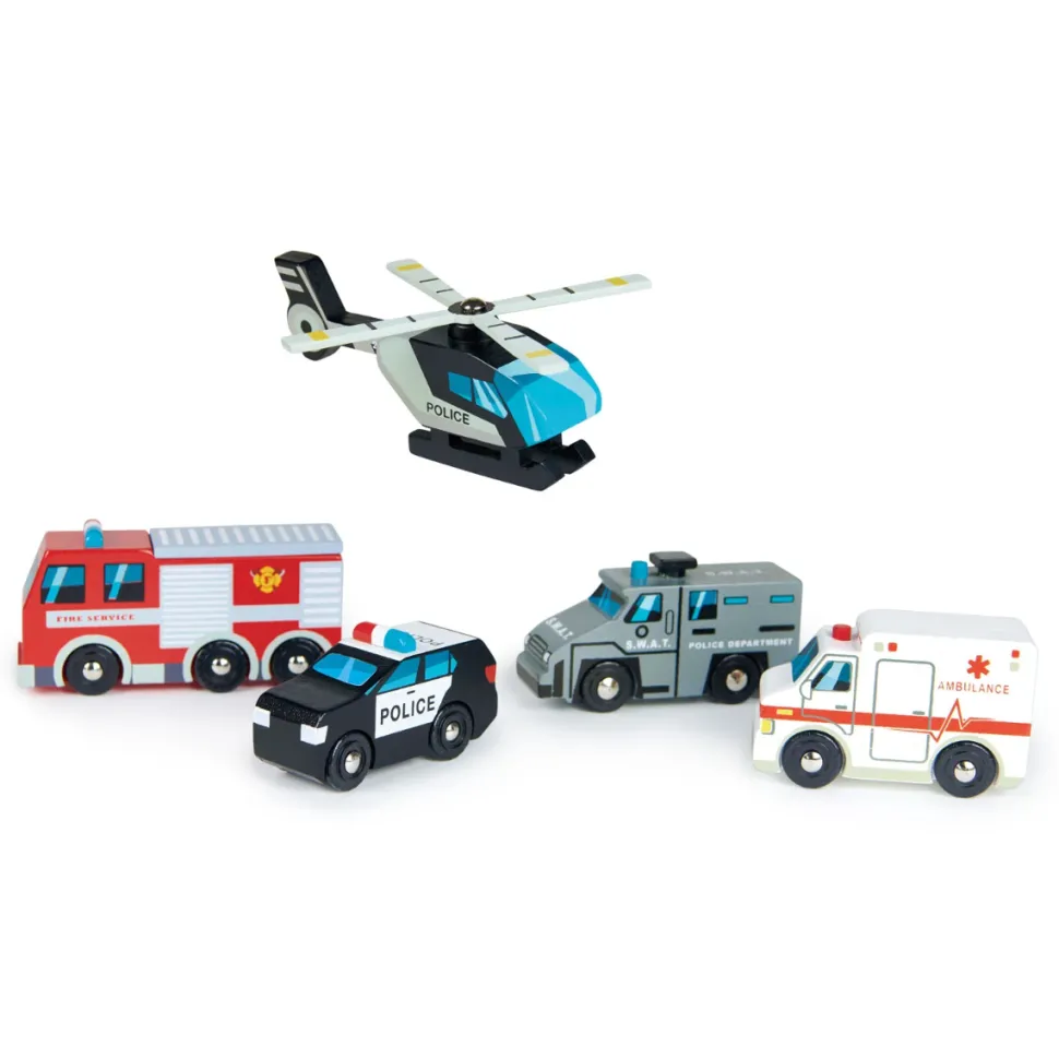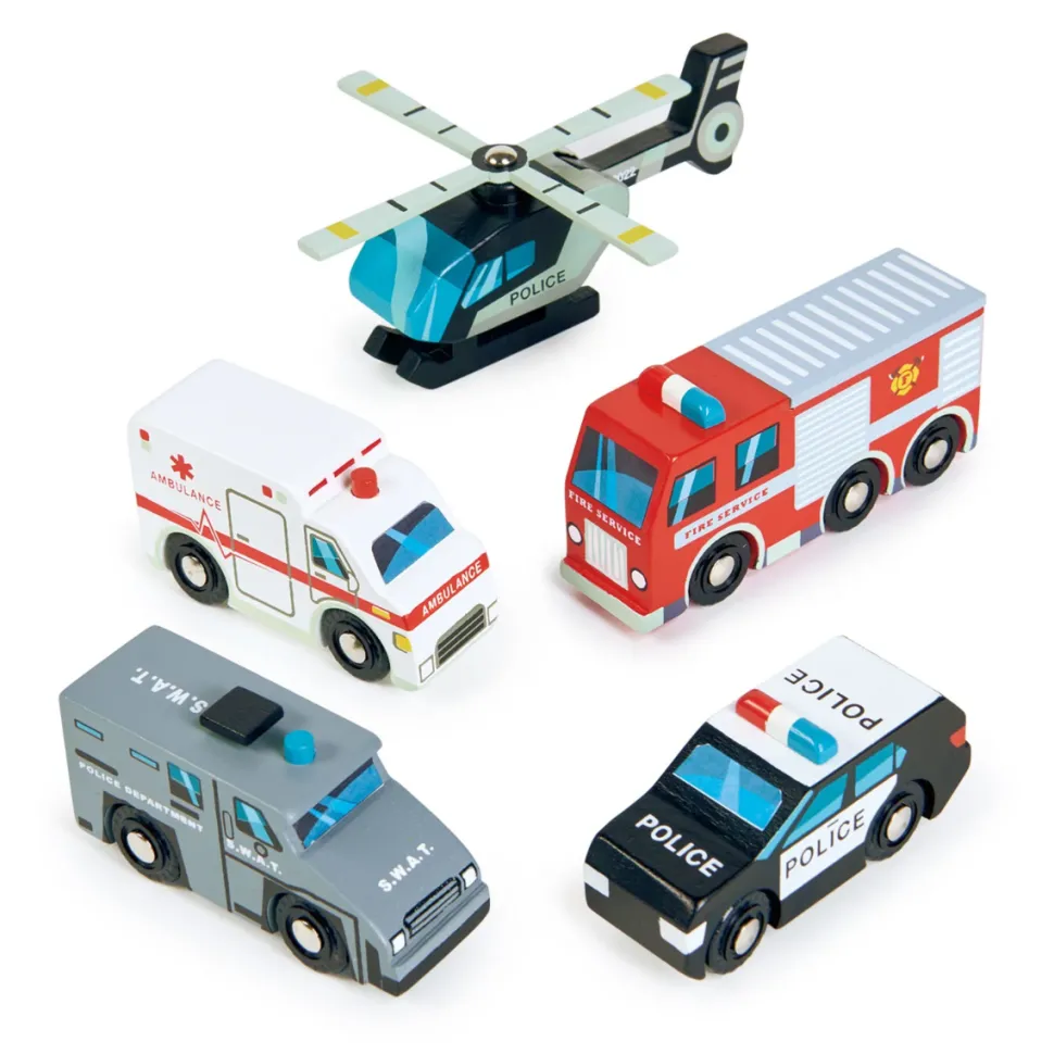 Aus Holz.Die Fahrzeuge Sind Ca. 12 Cm Lang. Der Polizeihubschrauber Misst Z.B.: 12,5 X 3 X 5 Cm.