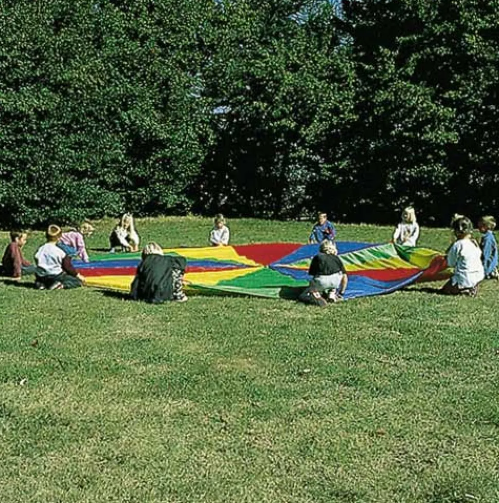 Damit Kann Man Auf Wunderbare Weise Eine Grundlegende Korperliche Koordinationsfahigkeit Entwickeln. Ein Fallschirm Inspiriert Kindergruppen Und Erwachsene Zu Unzahligen Schonen Aktivitaten. Dieses Modell Besteht Aus Buntem, Leichten Und Feuerwiderstandsfahigen Polyester Und Besitzt Starke Griffe.