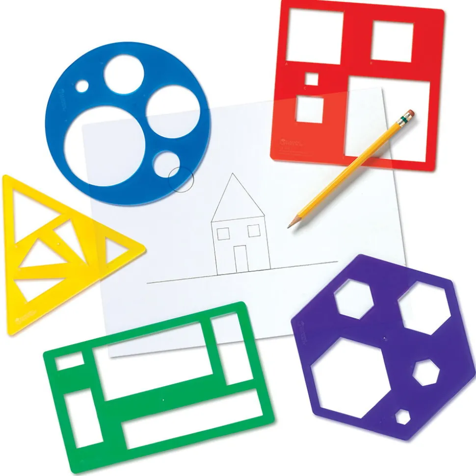 Jede Der 5 Schablonen Enthalt Verschiedene Grosen Der Einzelnen Geometrischen Formen. Die Groste Form Jeweils Ist Die Schablone Selbst.