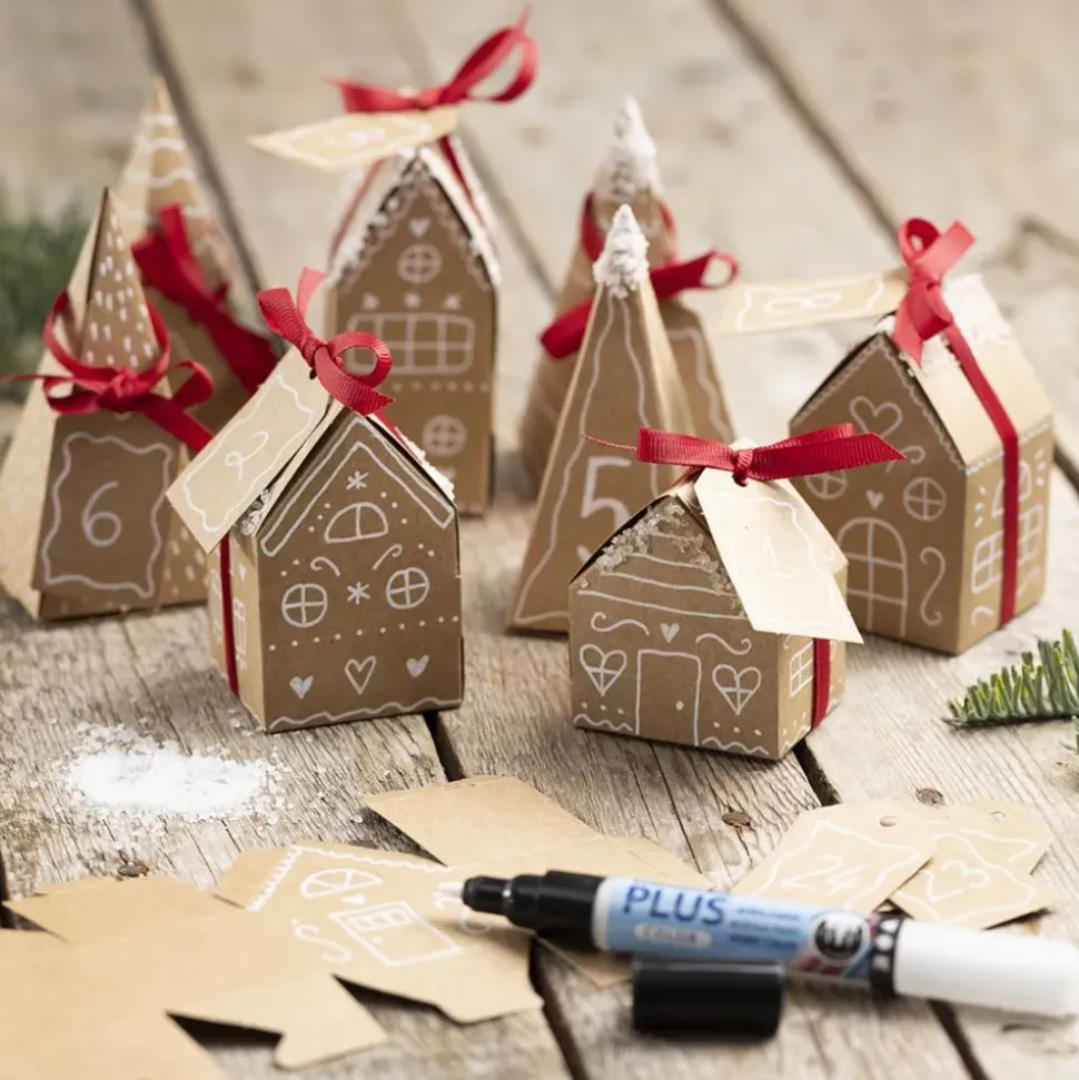 Bastle Einen Feinen Adventskalender Mit 24 Kleinen Hausern Und Baumen Aus Karton, Die Du Dekorieren Und Mit Keksen, Schokolade Oder Anderem Fullen Kannst.
