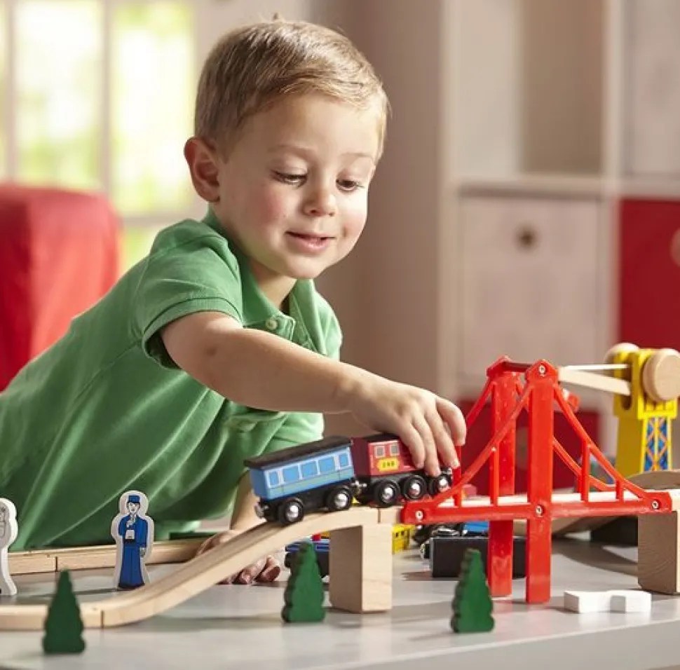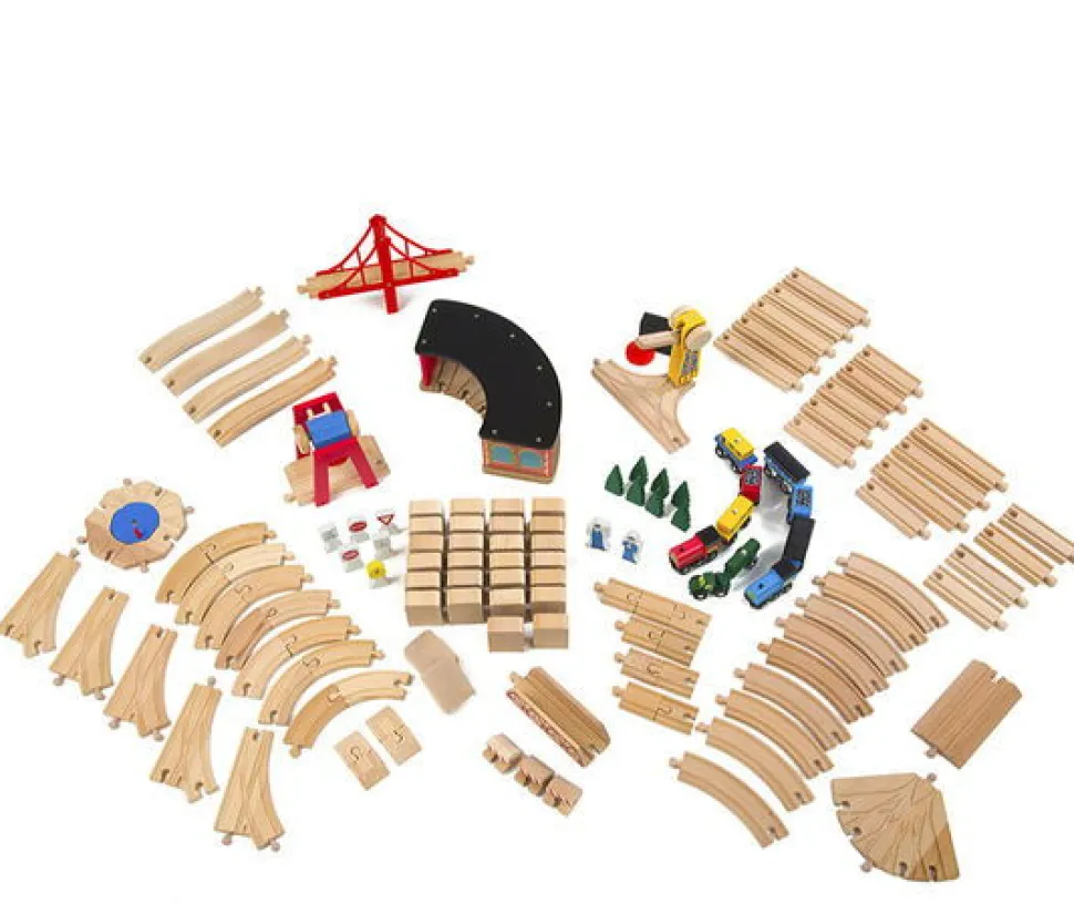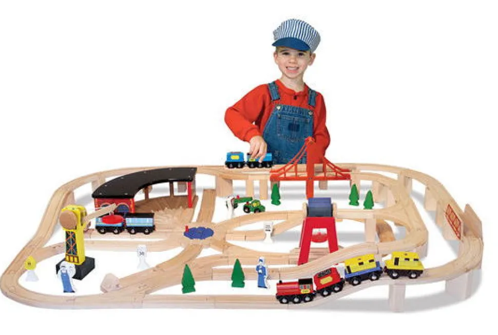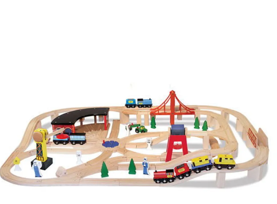 Wenn „Thomas, Die Kleine Lokomotive“ Oder Chuggington Ein Hit Bei Euch Zuhause Sind, Dann Wird Dieses Schone Eisenbahnset Ein Volltreffer Für Dein Kind. Das Set Enthalt: Viele Meter Schienen, Baumen, Verkehrsschilder, Bahnset Mit Guter- Und Passagierzugen, Ein Magnetischer Kran, Eine T-Kreuzung, Zwei Arten Von Brucken Und Eine Schicke Drehscheibe, Wo Die Zuge Eine Festliche Runde Drehen Oder Wenden Konnen.