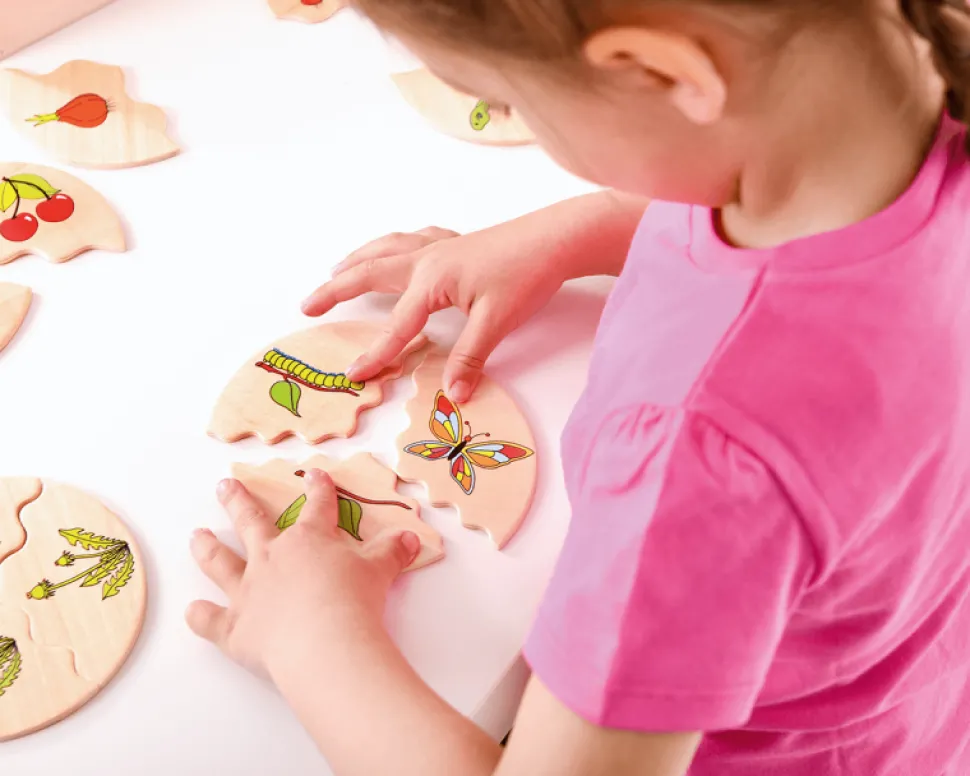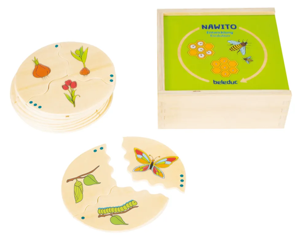 Die Puzzles In Der Feinen Holzbox Bestehen Alle Aus 10 Feinen Schichten, Welche Die Lebenszyklen Verschiedener Tiere Zeigen. War Eine Fliege Einmal Ein Schmetterling Oder Stammen Fliegen Von Wasserflohen Ab? Unterhaltet Euch Uber Die Biologische Entwicklung Von Lebenwesen, Wahrend Ihr Spas Mit Den Puzzles Habt Und Gemeinsam Schlauer Werdet.