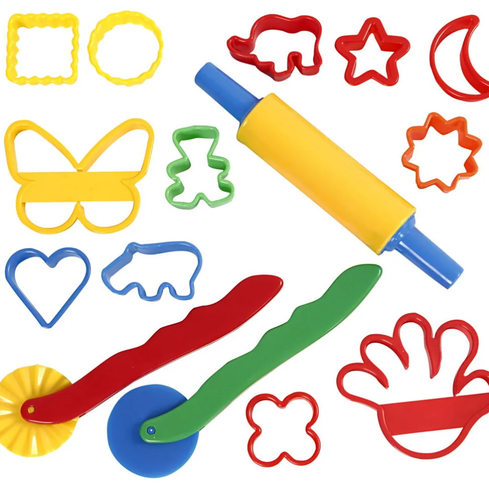 Mit Diesem Set Erhaltst Du 15 Werkzeuge In Verschiedenen Farben. Es Gibt Drei Werkzeuge Und 12 Ausstechformen.