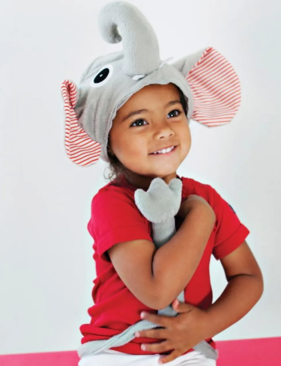 Hier Bekommt Dein Kind Eine Weiche Und Lustige Elefantenkappe Mit Gummizug Am Hals Und Einem Festlichen, Weichen Elefantenschwanz, Der Mit Klettverschluss Um Die Taille Befestigt Wird.
