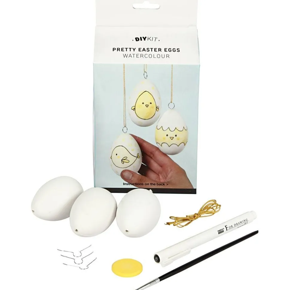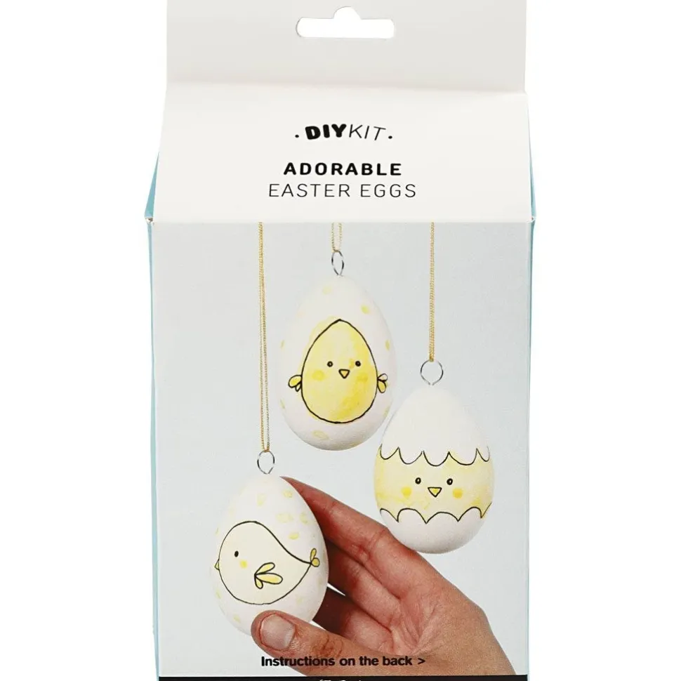 Dieses Set Enthalt 3 Weise Eier Aus Kunststoff, 3 Aufhangehaken, Schnur, Schwarzer Filzstifte, Gelbe Farbe Und Pinsel – Und 3 Locher – Vollig Gratis.