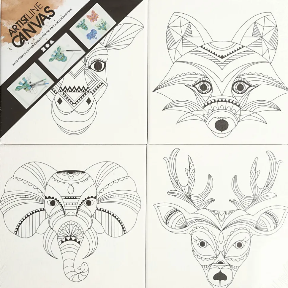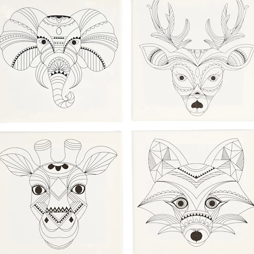 Leinwande Mit 4 Vorgedruckten Tiermotiven. Wenn Es Bei Einem Kunstwerk Nur Ums Ausmalen Geht, Kann Das Ein Wenig Einfacher Und Zuganglicher Für Dein Kind Wirken.