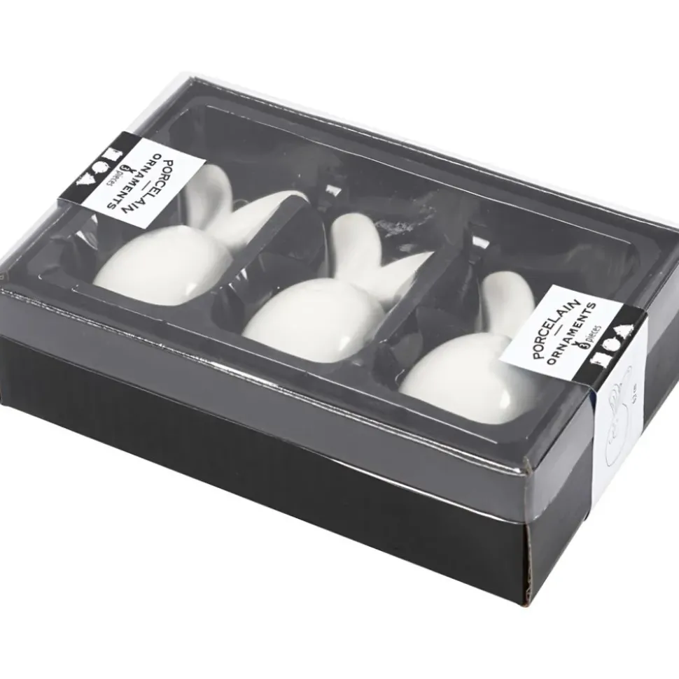 3 Hasen Aus Glasierter Keramik, Denen Ein Wenig Dekoration Oder Farbe Fehlt.