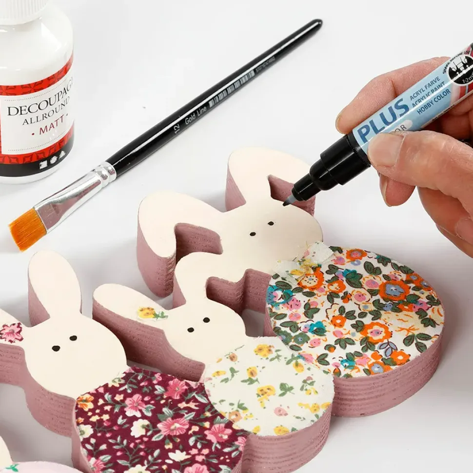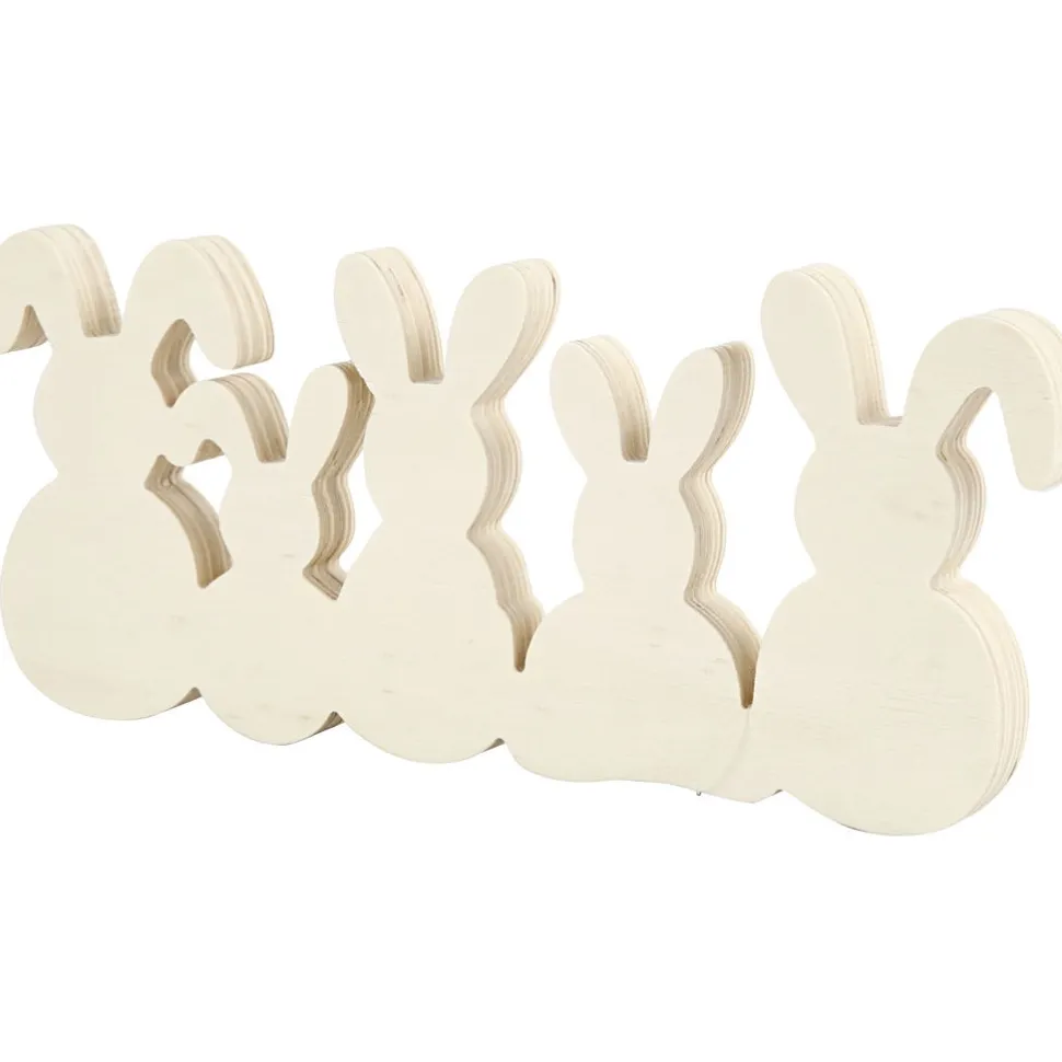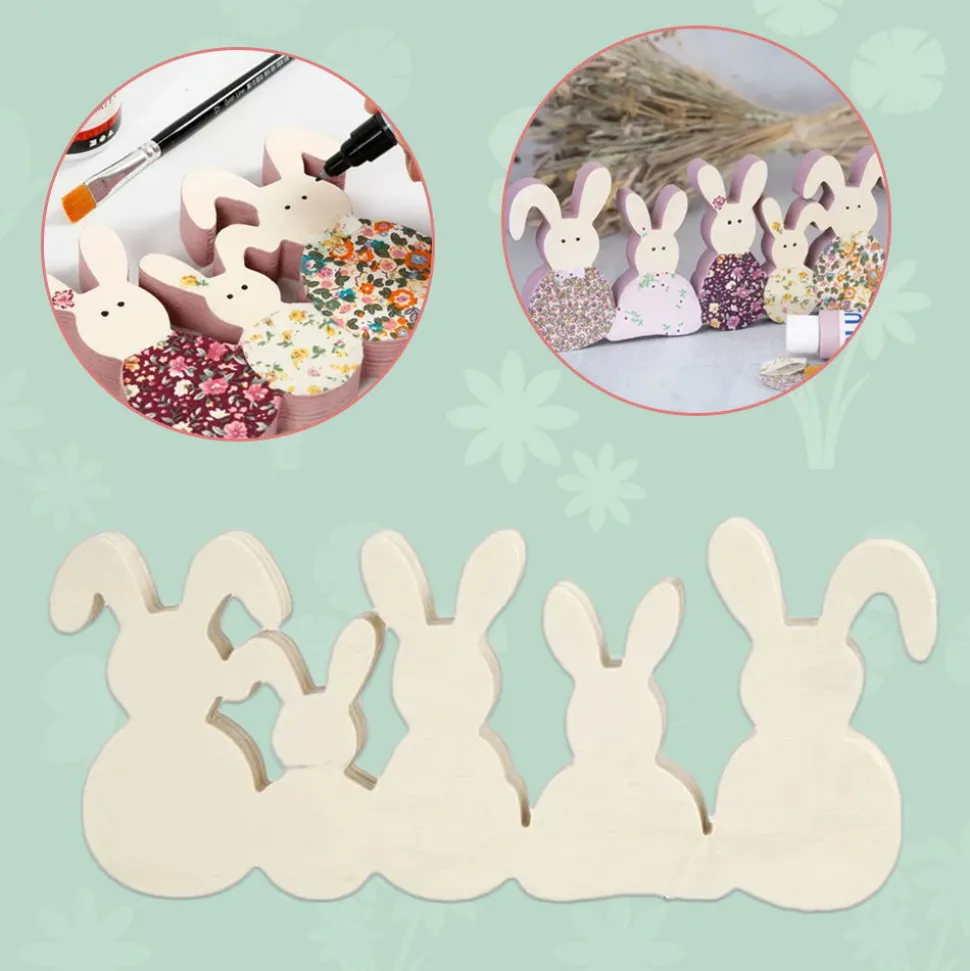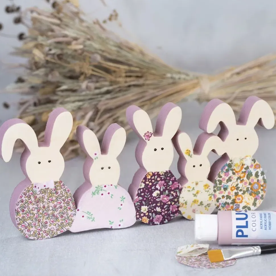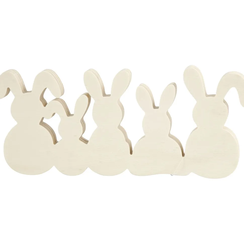 Eine Osterhasenfamilie Mit Mama, Papa Und 3 Kleinen Haschen, Die Du Bemalen Und Mit Pompons Oder Pailletten Dekorieren Kannst.