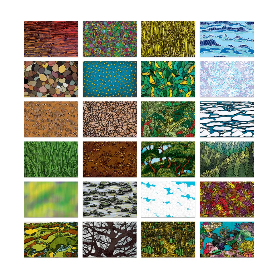 Ein Imposanter Stapel Mit Wunderschonem Papier, Das Mit Motiven Aus Der Natur Bedruckt Ist.