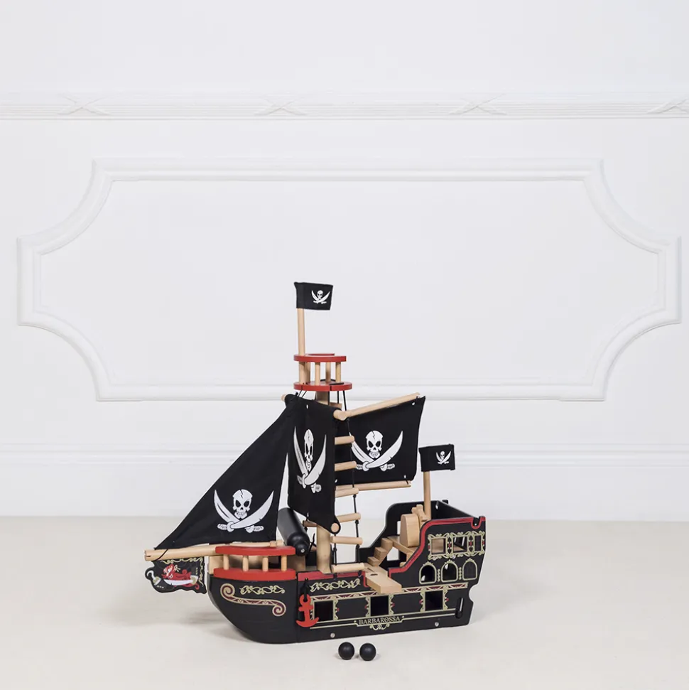 Wer Muss Uber Die Planke Gehen? Es Herrscht Echte Piratenatmosphare Mit Totenkopfen, Kanone Und Ausguck.Naturlich Gibt Es Auch Kanonenkugeln Für Die Kanone. Drei Stoffsegel Werden Das Schiff Wahrscheinlich Auf Die 7 Ozeane Bringen. Das Schiff Lasst Sich An Dem Einen Ende Offnen – Also Konnen Die Piraten Vielleicht Die Gefundenen Schatze Dort Verstauen.Der Landgang Kann Ein- Und Ausgefahren Werden.Denkt Jedoch Daran, Anker Zu Werfen, Damit Das Schiff Nicht Wegsegelt, Wahrend Ihr An Land Seid. Wenn Der Feind Zu Nahe Kommt, Rollt Man Einfach Die Kanone In Position Und Feuert Die Kanonenkugeln Ab. Wenn Der Pirat Schlaft (Mit Einem Offenen Auge), Steht Das Piratenschiff Und Sieht Cool Aus Im Kinderzimmer – Und Keine Feinde Trauen Sich In Die Nahe Vom Schiff Zu Kommen. Das Schiff Ist Für Einen Erwachsenen Leicht Aufzubauen. .Hinweis: Die Figuren Sind Nicht Enthalten. .Material: Nachhaltiges Gummiholz, Textil.Mase: L: 49Cm, H: 48Cm, B: Ca. 20 Cm. Alter: Ab Drei Jahren