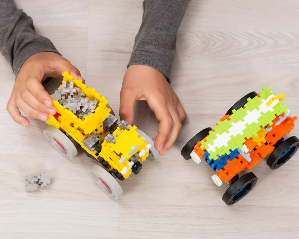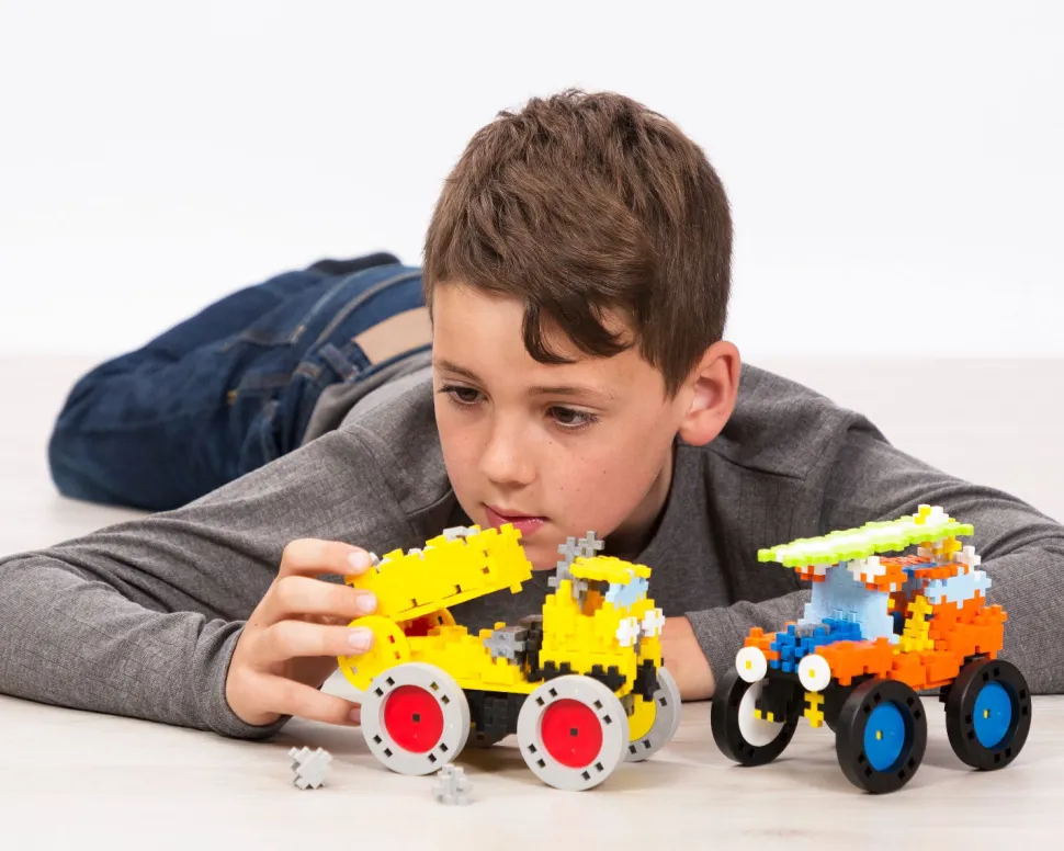 Das Bauen Mit Plus-Plus Fordert Bei Deinem Kind Logisches Und Geometrisches Denken. Dein Kind Verwendet Seine Fantasie, Um Sich Geschichten Zu Den Fahrzeugen Einfallen Zu Lassen. Sollen Sie Vielleicht Ein Rennen Fahren Oder Habt Ihr Vielleicht Eine Stadt Mit Strasenkreide Gemalt Und Die Autos Mussen Dort Etwas Erledigen?