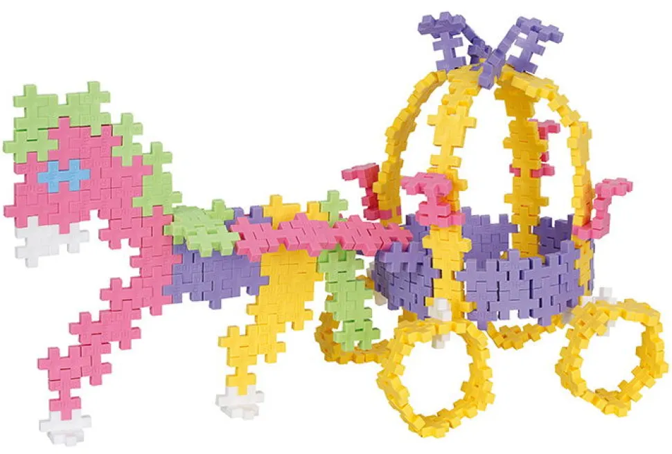 Die Detaillierte Anleitung Zeigt Euch, Wie Ihr Mit Den 220 Kleinen Plus-Plus Bausteinen In Pastell-Farben Eine Hubsche Prinzessin Mit Ballonrock, Ein Einhorn Und Eine Schone Kutsche Mit Pferd Bauen Konnt.