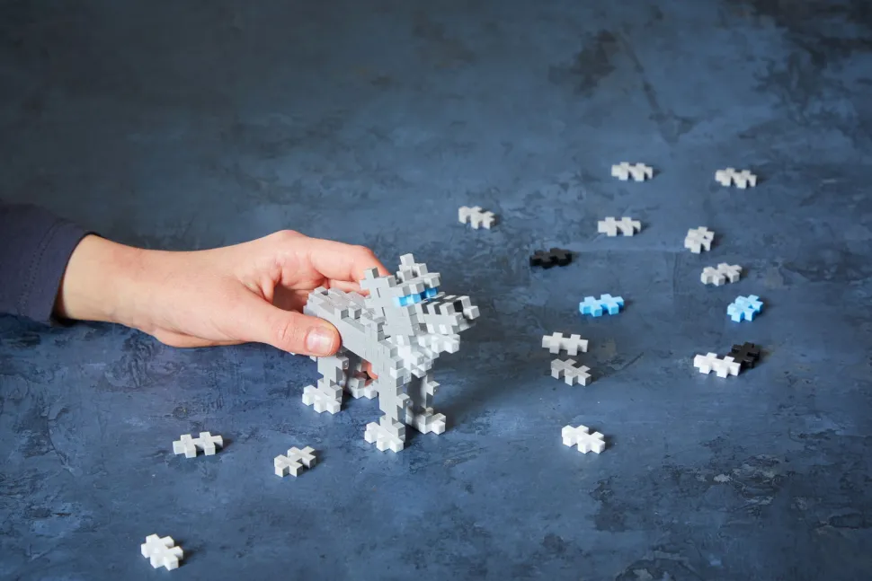 Dieses Rohr Ist Voller Plus-Plus Bausteinen. Diese 100 Teile Lassen Sich Zum Beispiel Zu Einem Grauen Wolf Zusammensetzen.
